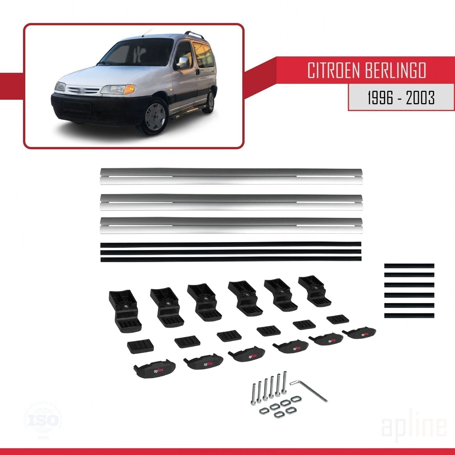 Compatible with Citroen Berlingo (M49) 1996-2003 BASIC Model Car Roof Rack Cross Bar Grey Aluminium 3 Bars