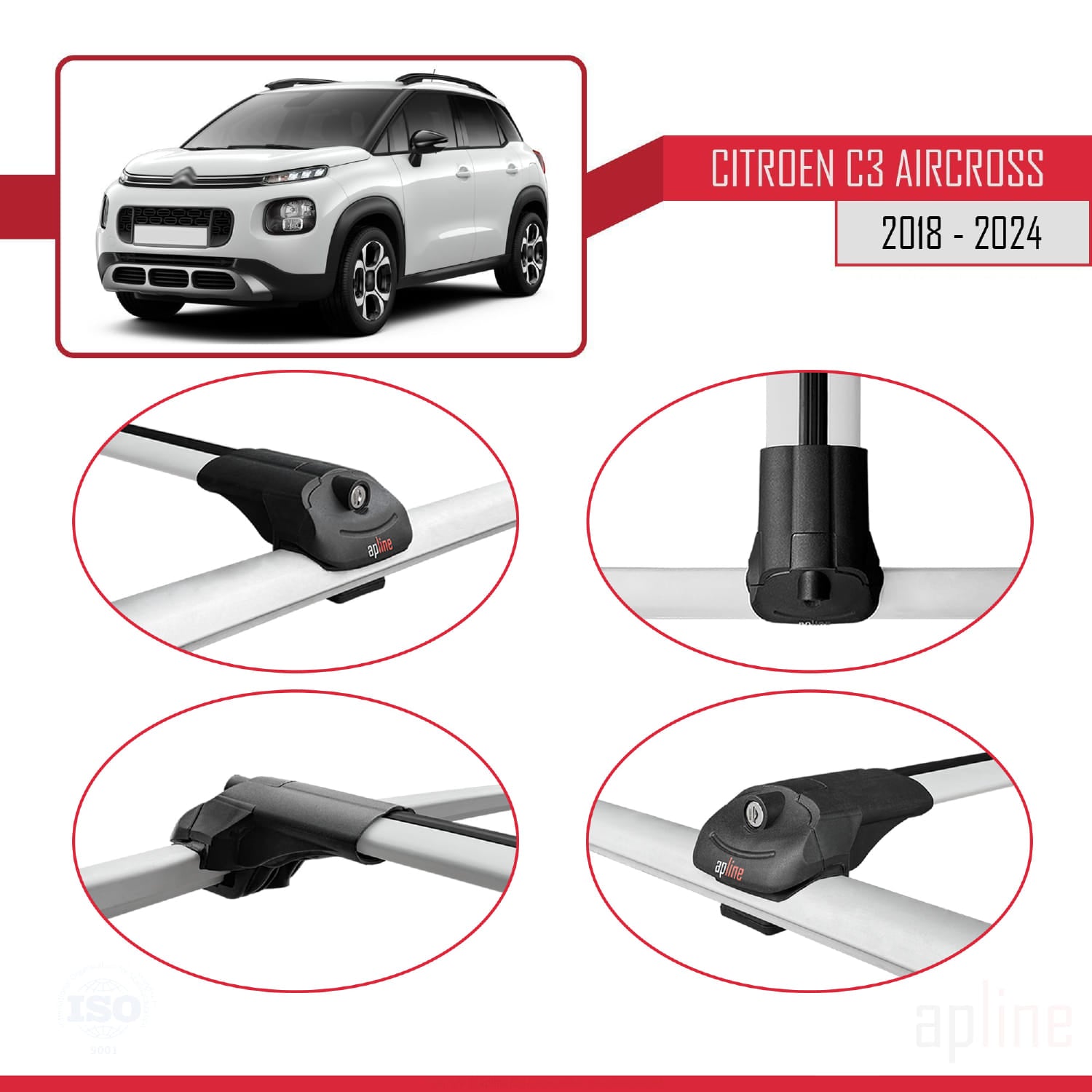 Compatible avec Citroen C3 Aircross (A88) 2018-2024 ACE-1 Barres de Toit Railing Porte-Bagages de Voiture Gris Aluminium 3 Barres
