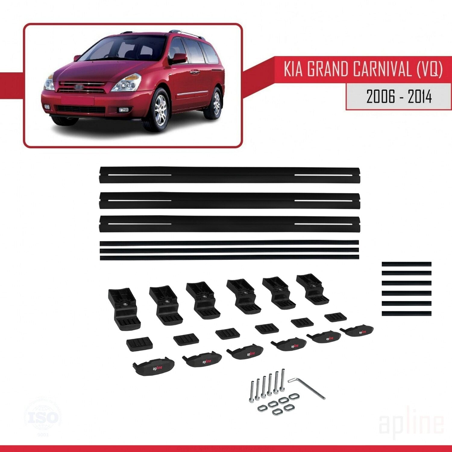 Compatible avec Kia Grand Carnival 2 (VQ) 2006-2014 BASIC Model Barres de Toit Railing Porte-Bagages de Voiture Noir Aluminium 3 Barres