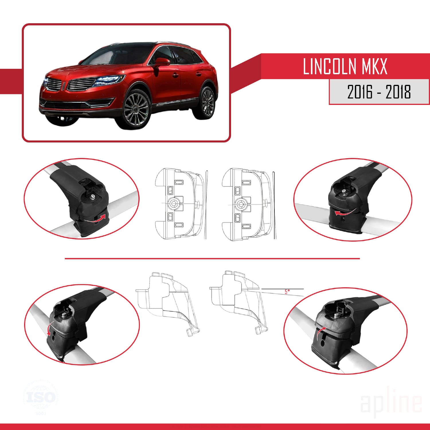 Compatible avec Lincoln MKX 2016-2018 ACE-2 Barres de Toit Railing Porte-Bagages de Voiture Gris Aluminium 2 Barres