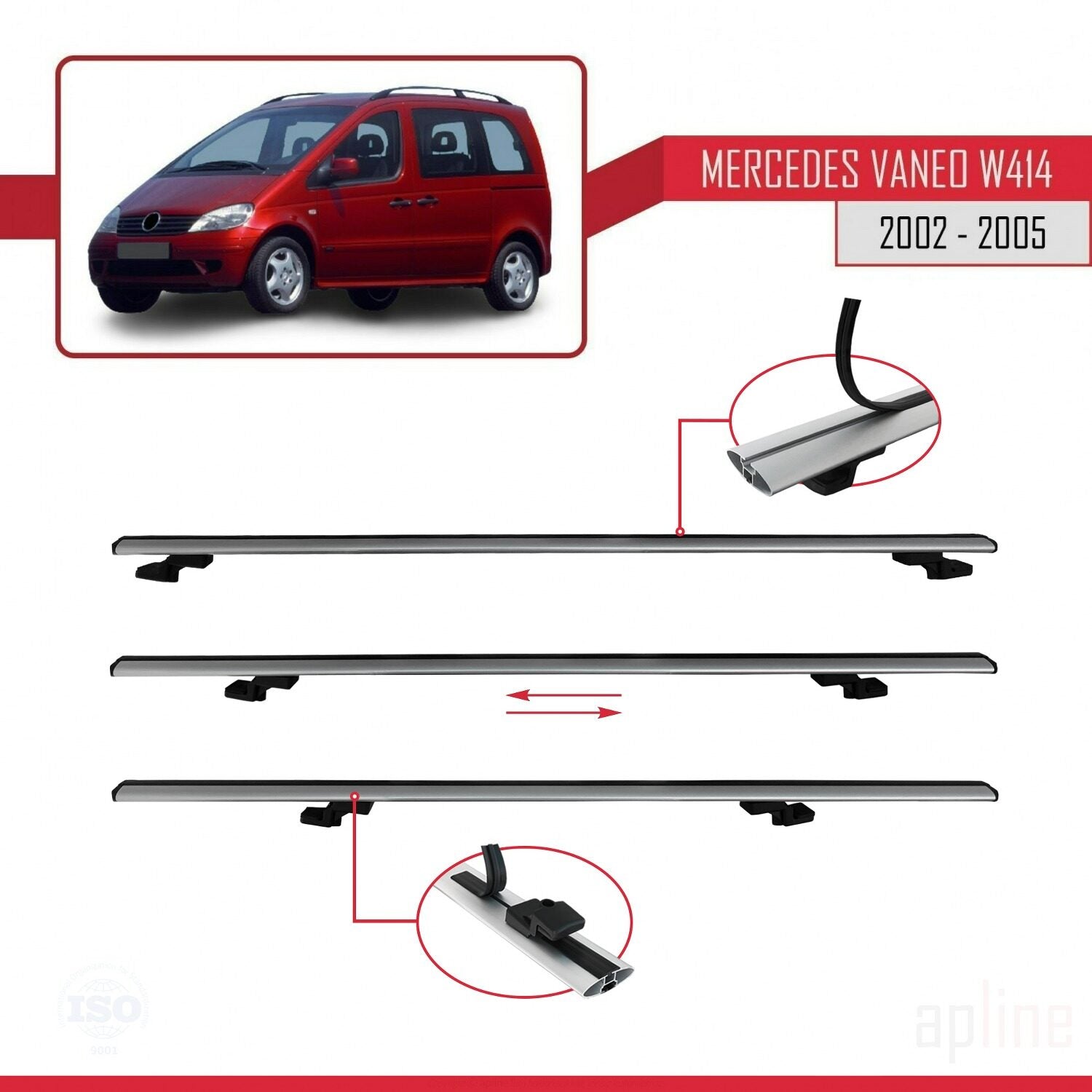 Compatible with Mercedes Vaneo (W414) 2002-2005 BASIC Model Car Roof Rack Cross Bar Grey Aluminium 2 Bars