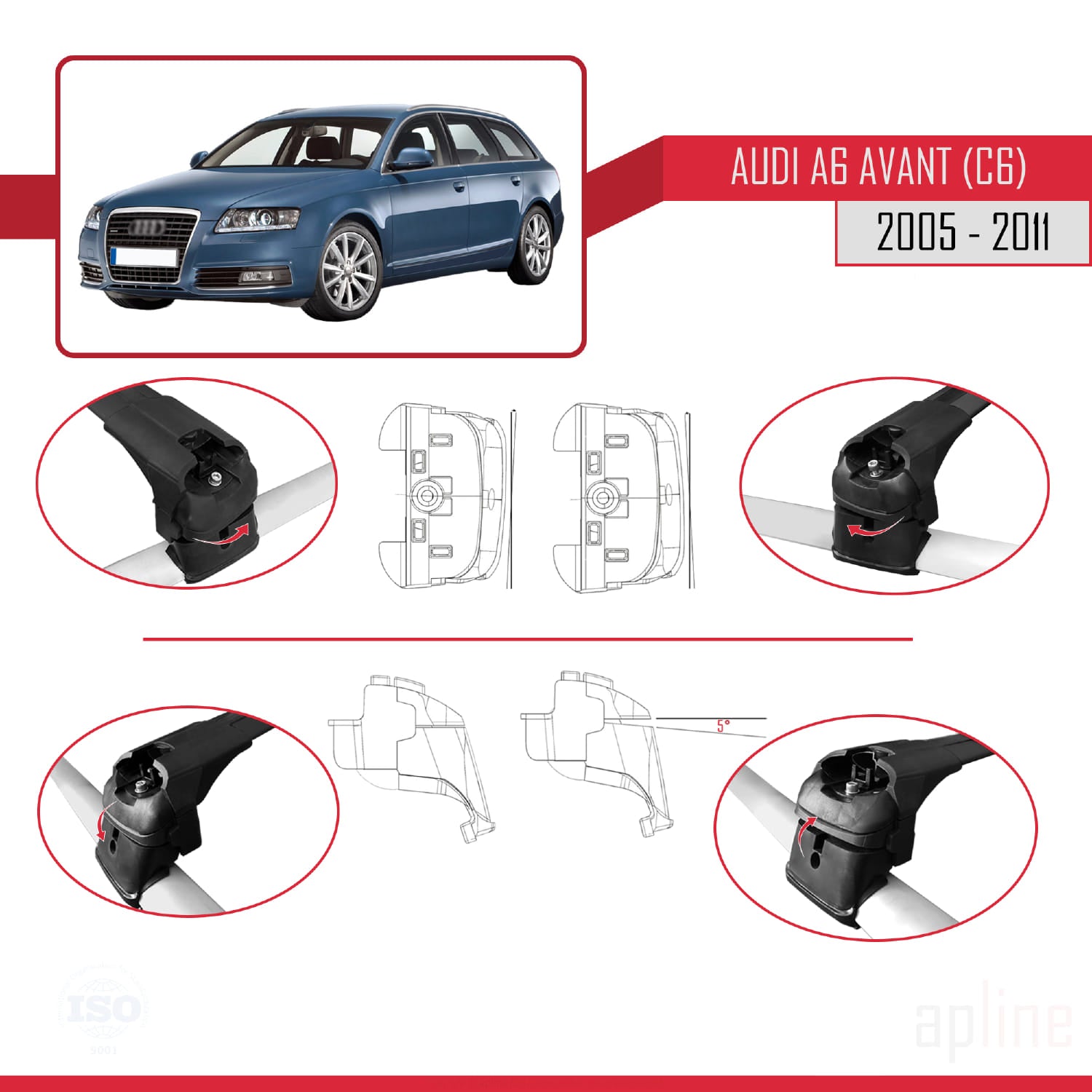 Compatible avec A6 (C6) Avant 2005-2011 ACE-2 Barres de Toit Railing Porte-Bagages de Voiture Noir Aluminium 2 Barres