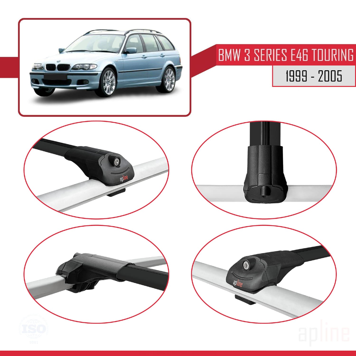Compatible avec BMW Série 3 (E46) Touring 1999-2005 ACE-1 Barres de Toit Railing Porte-Bagages de Voiture Noir Aluminium 2 Barres