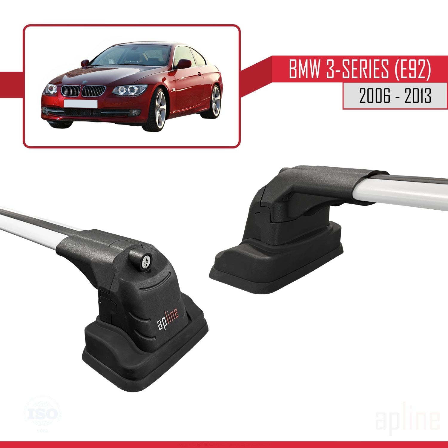 Compatible avec BMW Série 3 (E92) 2006-2013 ACE-3 Barres de Toit Railing Porte-Bagages de Voiture Gris Aluminium 2 Barres