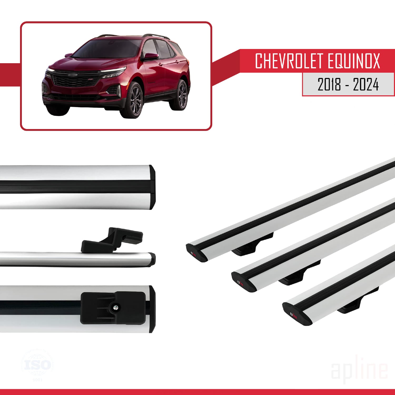 Compatible avec Chevrolet Equinox 2018-2024 BASIC Model Barres de Toit Railing Porte-Bagages de Voiture Gris Aluminium 3 Barres