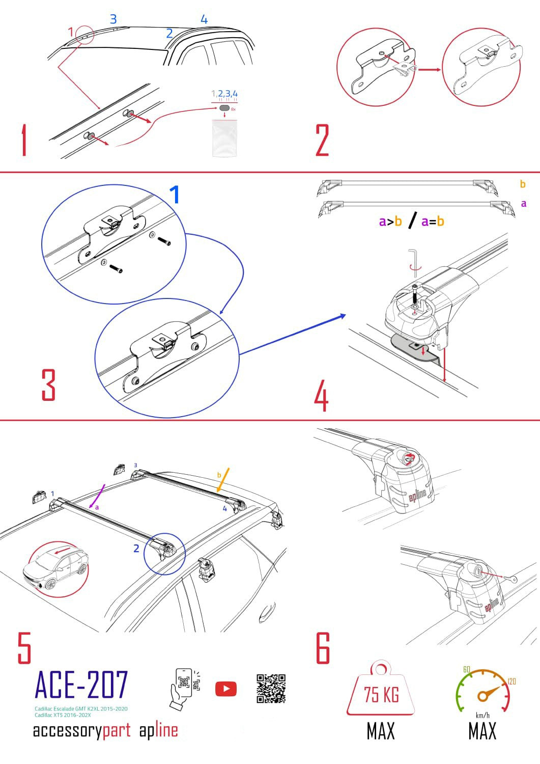 La limite de charge maximale dans le véhicule équipé de ce produit est de 75 kg. (Indépendamment des 2, 3 ou 4 barres d'aluminium, la limite légale est de 75 kg).