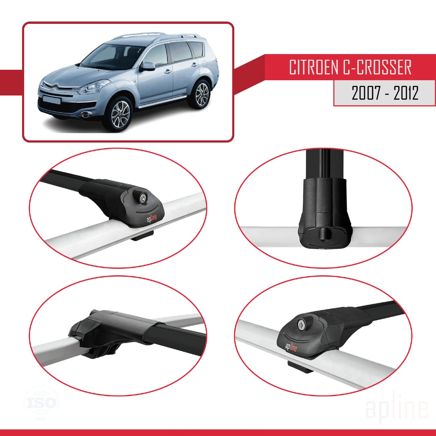 Compatible avec Citroen C-Crosser 2007-2012 ACE-1 Barres de Toit Railing Porte-Bagages de Voiture Noir Aluminium 2 Barres