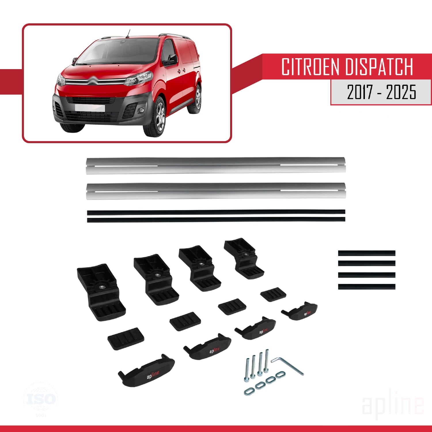 Compatible avec Citroen Dispatch (K0) 2017-2025 BASIC Model Barres de Toit Railing Porte-Bagages de Voiture Gris Aluminium 2 Barres