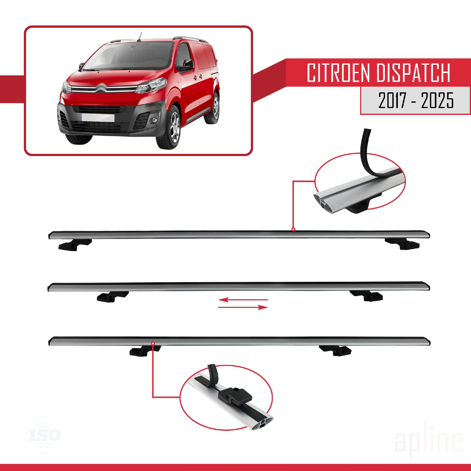Compatible avec Citroen Dispatch (K0) 2017-2025 BASIC Model Barres de Toit Railing Porte-Bagages de Voiture Gris Aluminium 4 Barres