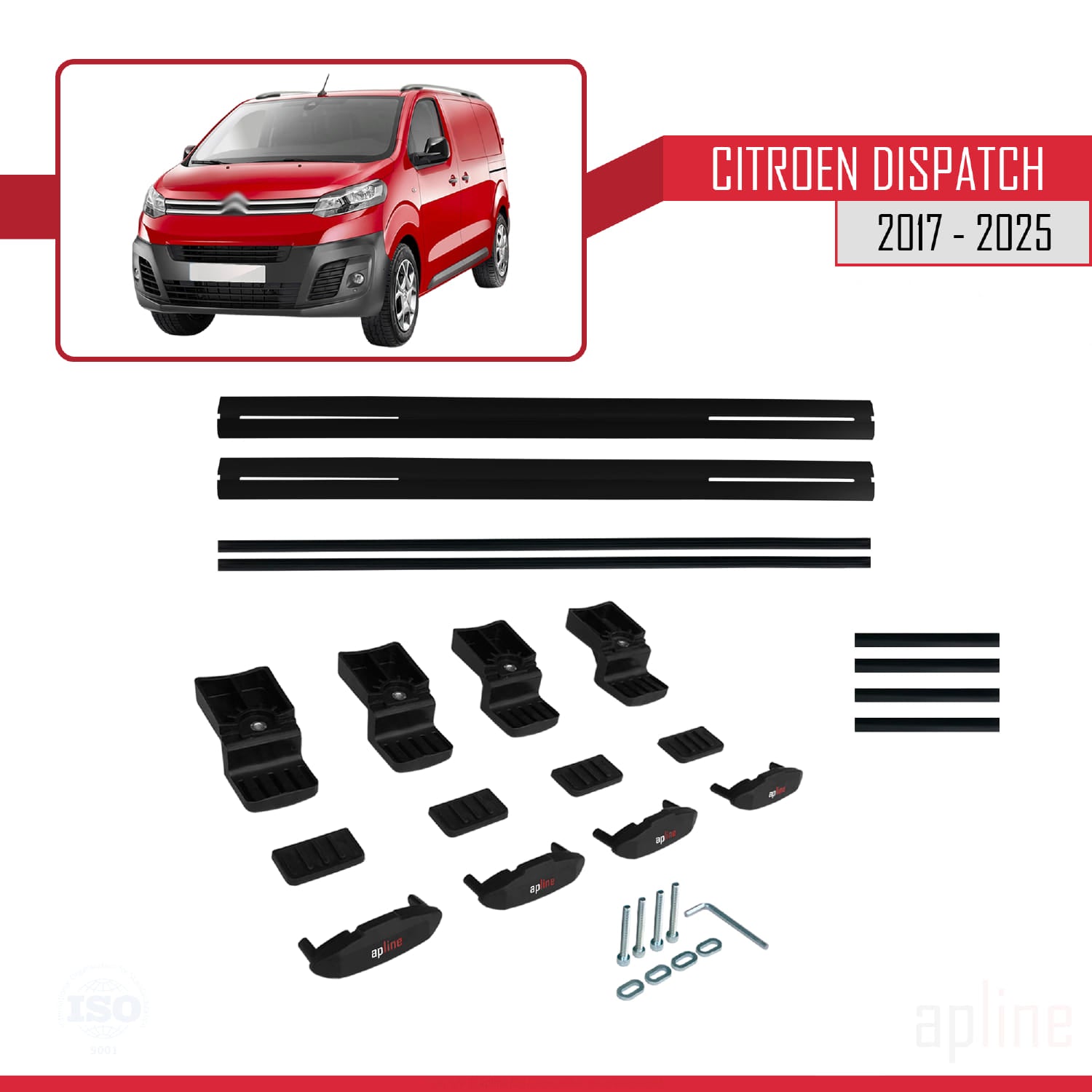 Compatible avec Citroen Dispatch (K0) 2017-2025 BASIC Model Barres de Toit Railing Porte-Bagages de Voiture Noir Aluminium 2 Barres