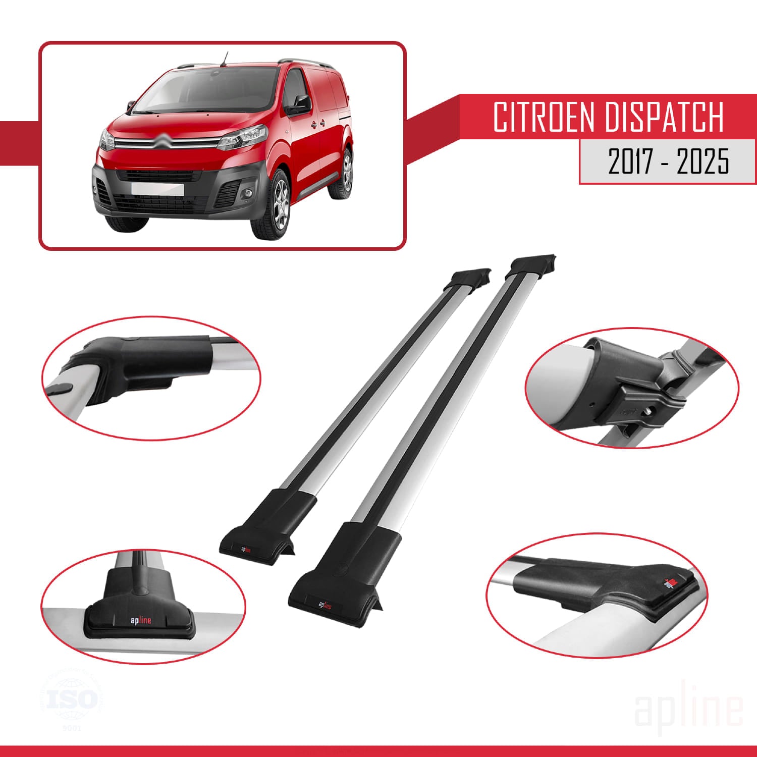 Compatible avec Citroen Dispatch (K0) 2017-2025 FLY Model Barres de Toit Railing Porte-Bagages de Voiture Gris Aluminium 2 Barres