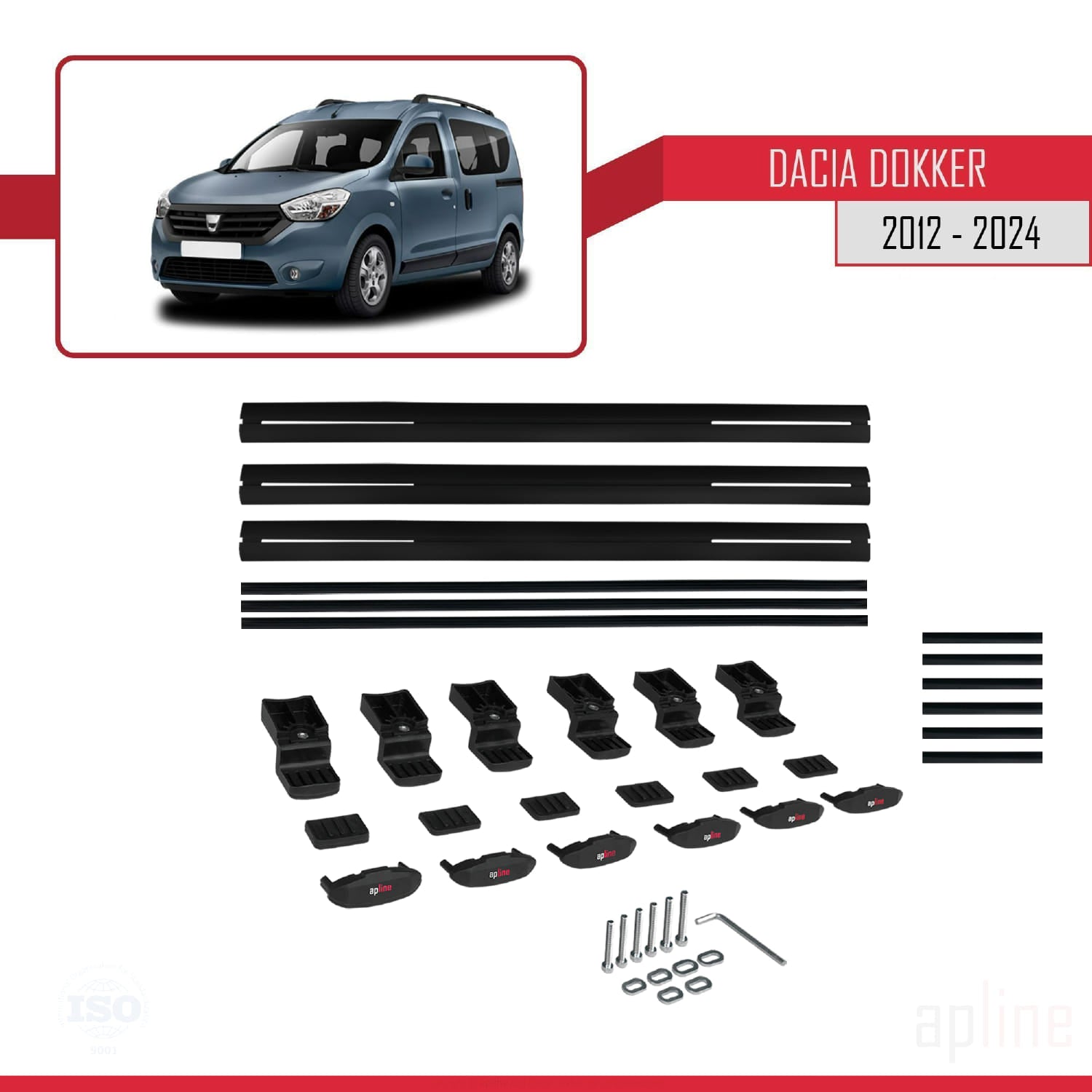 Compatible avec Dacia Dokker (K67) 2012-2024 BASIC Model Barres de Toit Railing Porte-Bagages de Voiture Noir Aluminium 3 Barres
