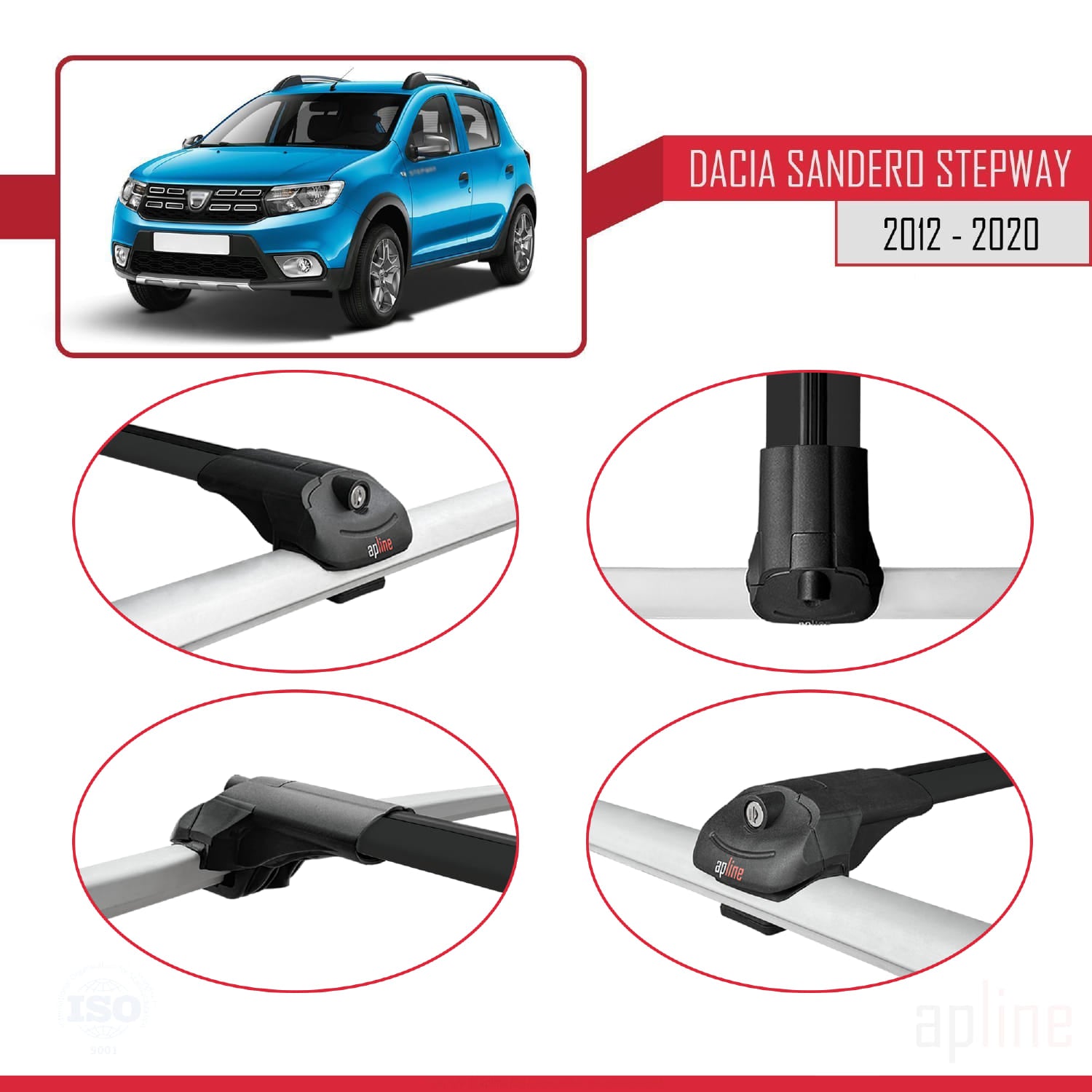 Compatible avec Dacia Sandero Stepway 2 2012-2020 ACE-1 Barres de Toit Railing Porte-Bagages de Voiture Noir Aluminium 3 Barres