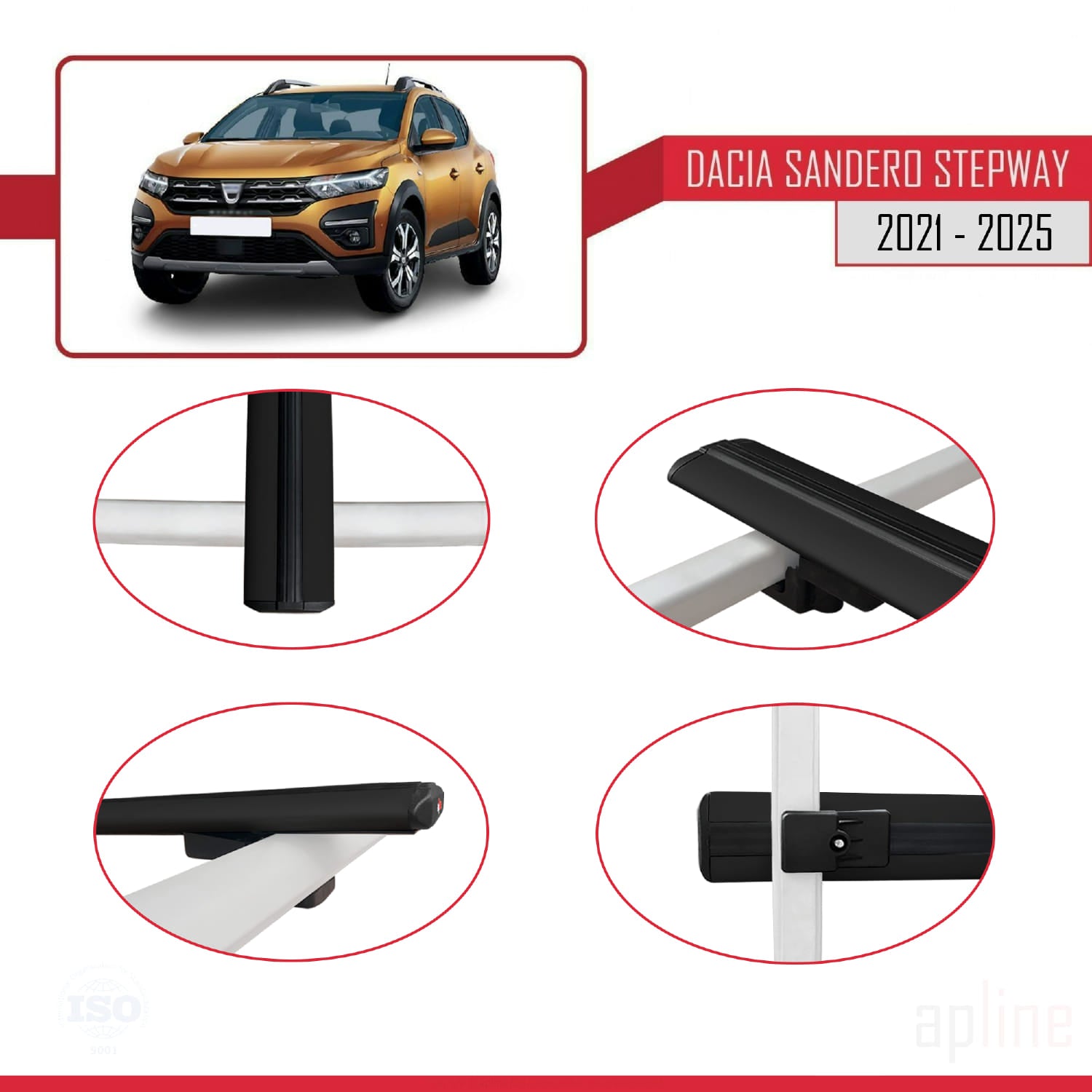 Compatible avec Dacia Sandero Stepway 3 2021-2025 BASIC Model Barres de Toit Railing Porte-Bagages de Voiture Noir Aluminium 3 Barres