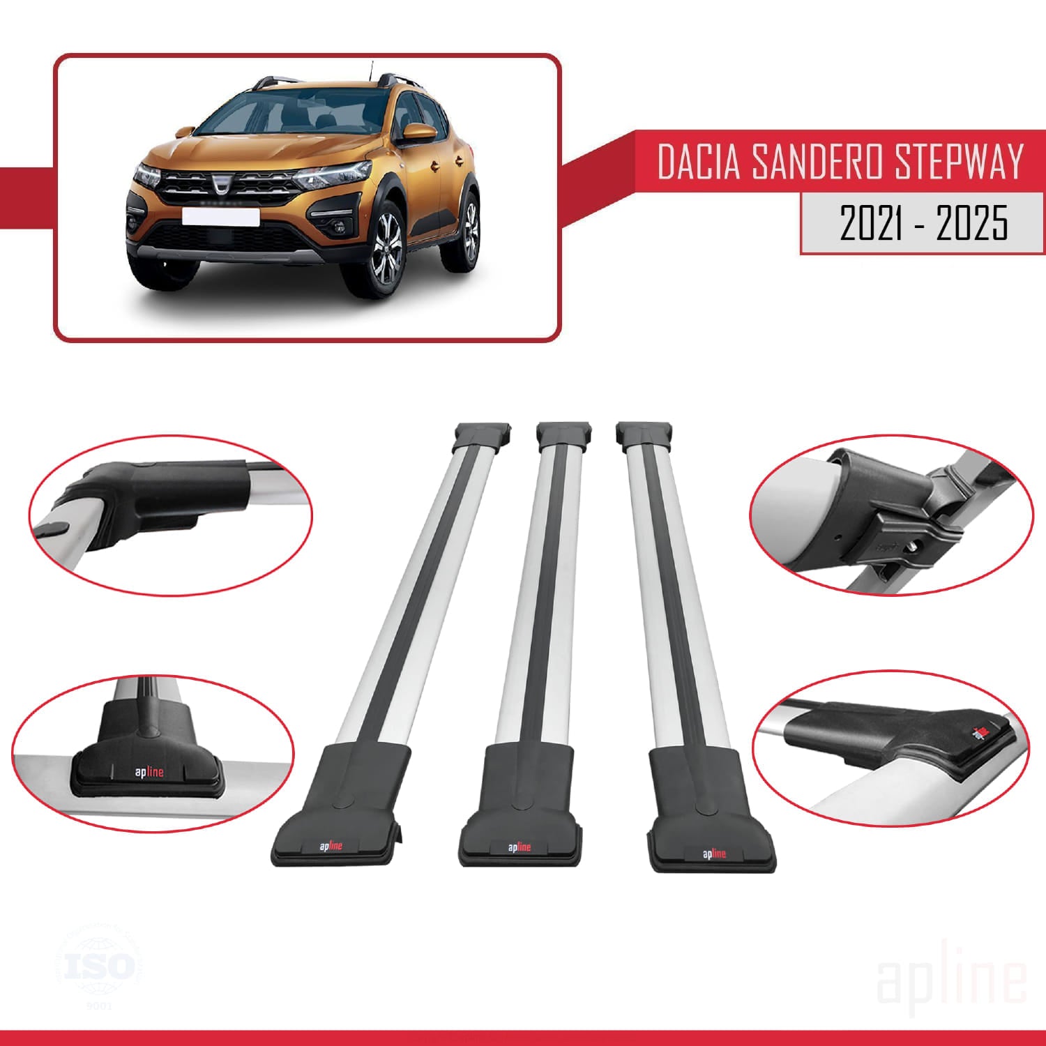 Compatible avec Dacia Sandero Stepway 3 2021-2025 FLY Model Barres de Toit Railing Porte-Bagages de Voiture Gris Aluminium 3 Barres