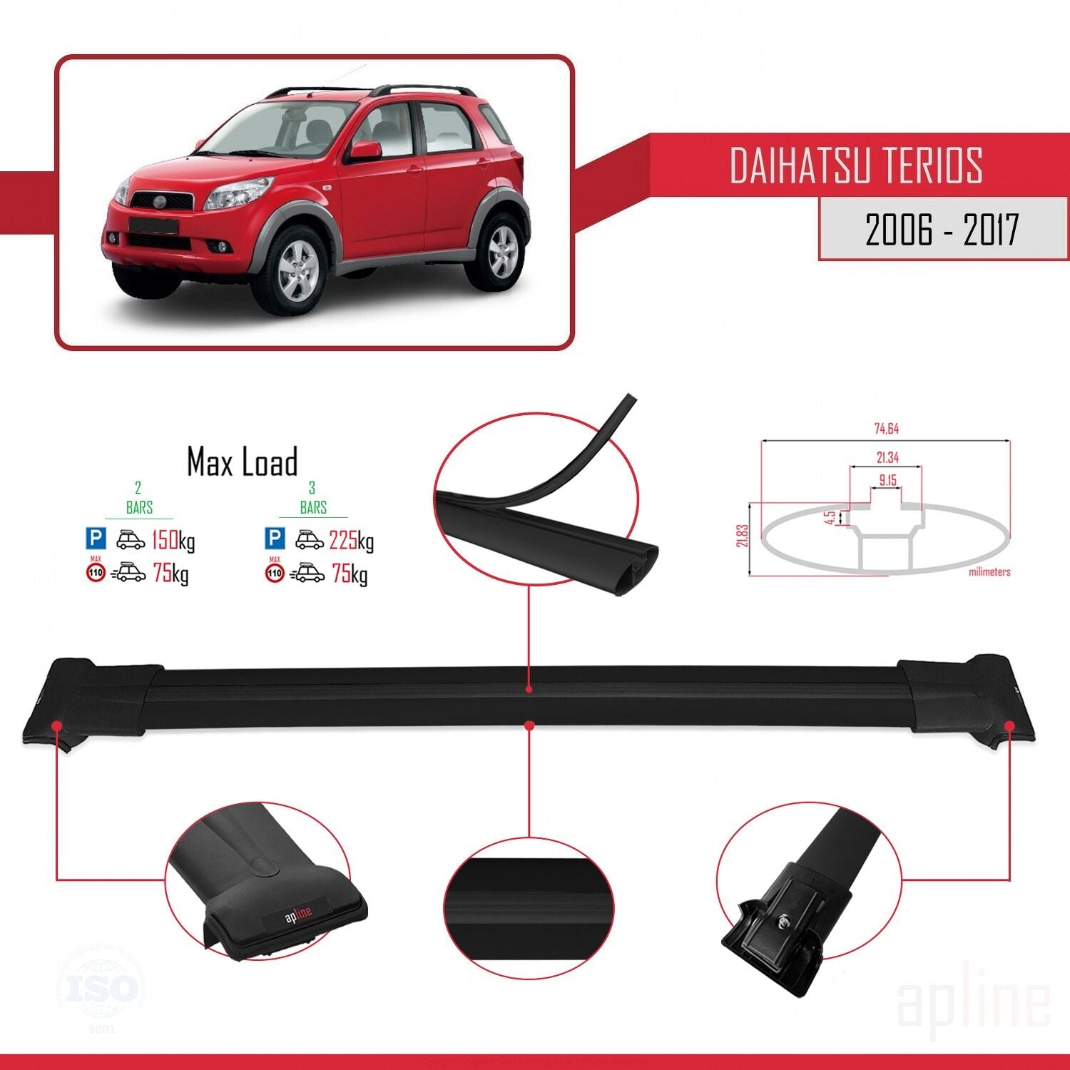 Compatible avec Daihatsu Terios 2 (J200) 2006-2017 FLY Model Barres de Toit Railing Porte-Bagages de Voiture Noir Aluminium 2 Barres