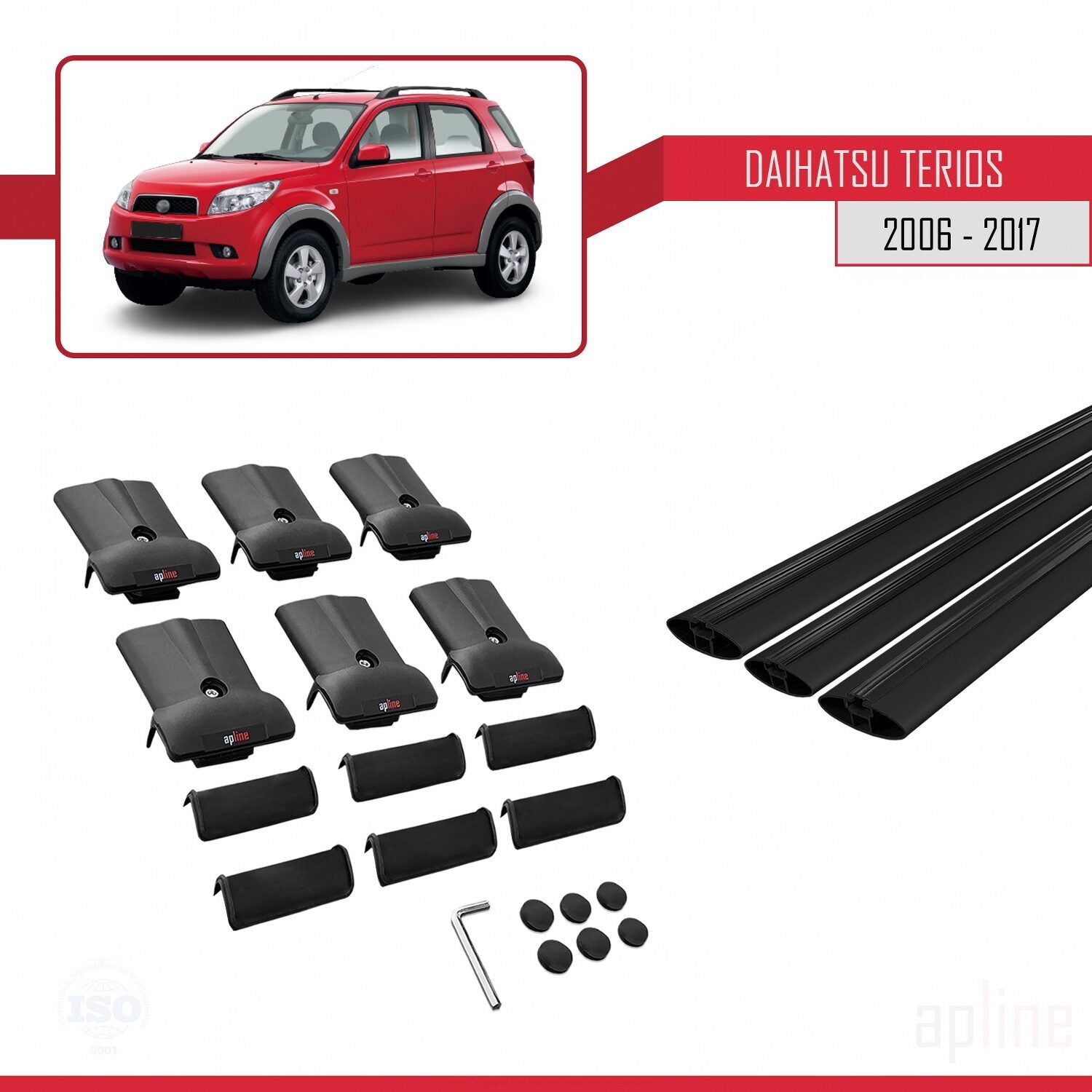 Compatible avec Daihatsu Terios 2 (J200) 2006-2017 FLY Model Barres de Toit Railing Porte-Bagages de Voiture Noir Aluminium 3 Barres