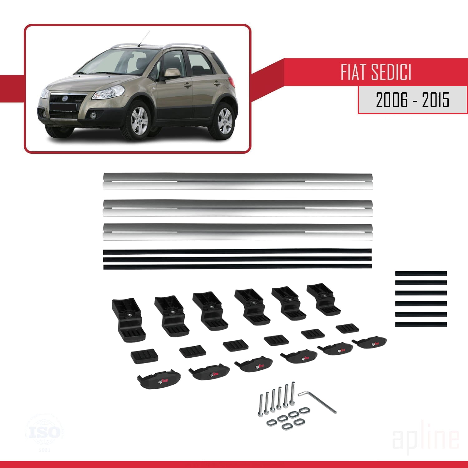 Compatible avec Fiat Sedici 2006-2015 BASIC Model Barres de Toit Railing Porte-Bagages de Voiture Gris Aluminium 3 Barres
