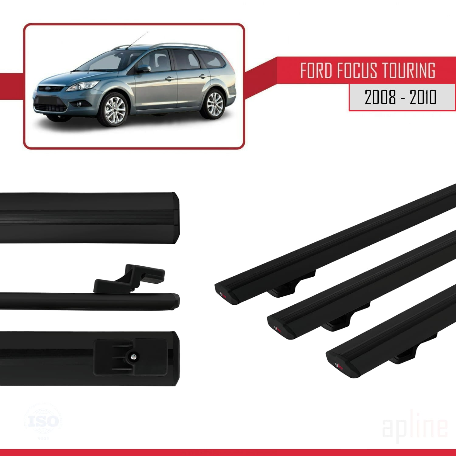 Compatible avec Ford Focus 2 (C307) Turnier 2008-2010 BASIC Model Barres de Toit Railing Porte-Bagages de Voiture Noir Aluminium 3 Barres