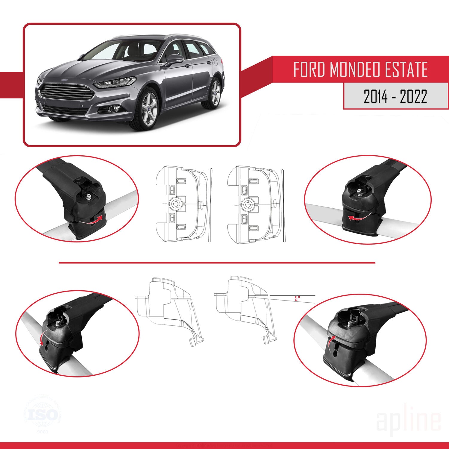 Compatible avec Ford Mondeo 4 (CD391) 2014-2022 ACE-2 Barres de Toit Railing Porte-Bagages de Voiture Noir Aluminium 2 Barres