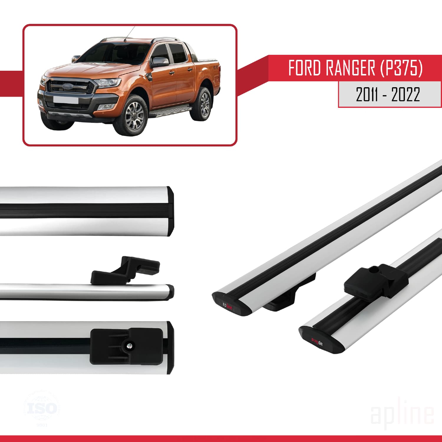 Compatible avec Ford Ranger (P375) 2011-2022 BASIC Model Barres de Toit Railing Porte-Bagages de Voiture Gris Aluminium 2 Barres