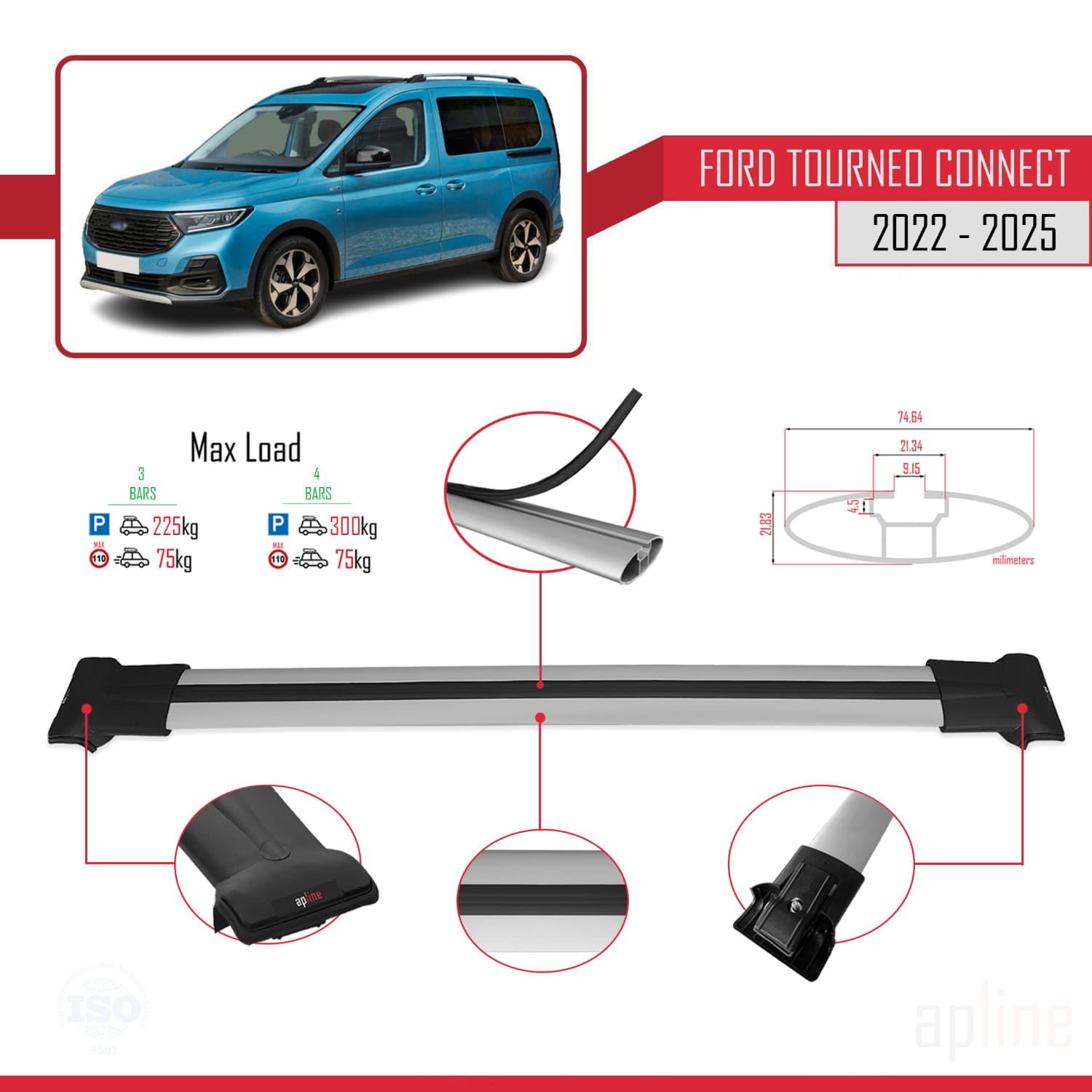 Compatible avec Ford Transit/Tourneo Connect 3 2022-2025 FLY Model Barres de Toit Railing Porte-Bagages de Voiture Gris Aluminium 3 Barres