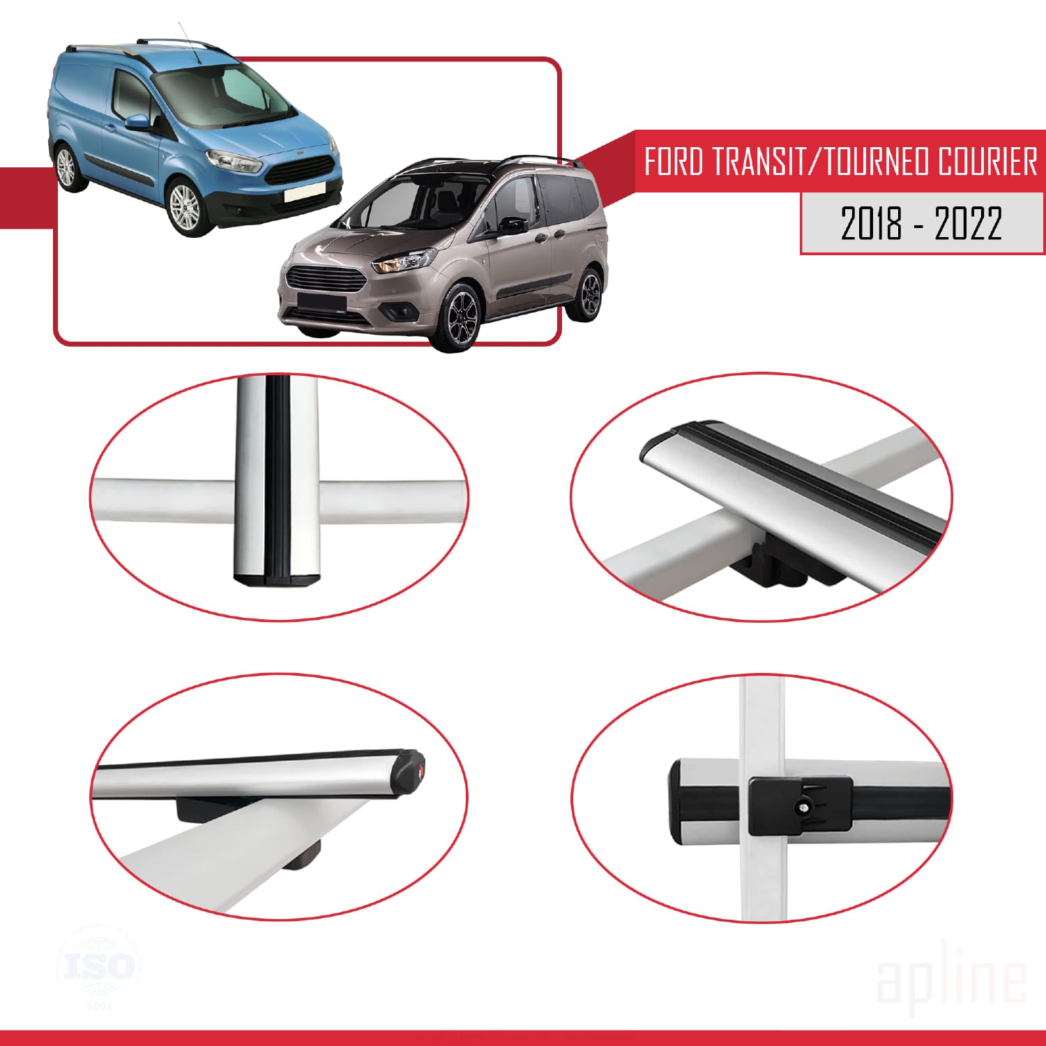 Compatible avec Ford Transit/Tourneo Courier Post-Facelift 2018-2022 BASIC Model Barres de Toit Railing Porte-Bagages de Voiture Gris Aluminium 4 Barres