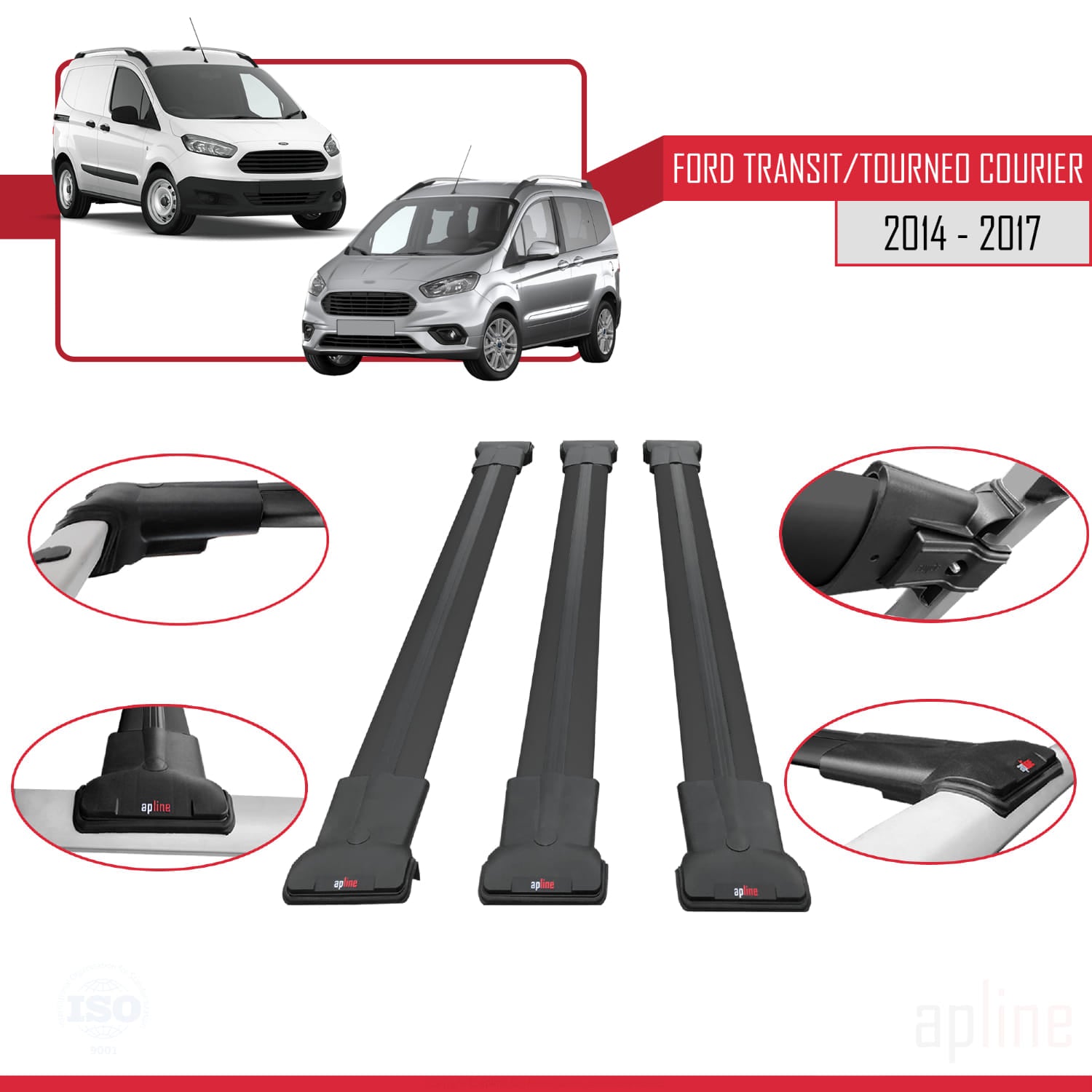 Compatible avec Ford Transit/Tourneo Courier Pre-Facelift 2014-2017 FLY Model Barres de Toit Railing Porte-Bagages de Voiture Noir Aluminium 3 Barres