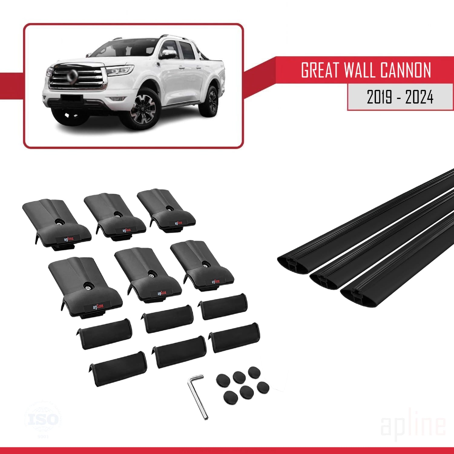 Compatible avec Great Wall Cannon 2019-2025 FLY Model Barres de Toit Railing Porte-Bagages de Voiture Noir Aluminium 3 Barres