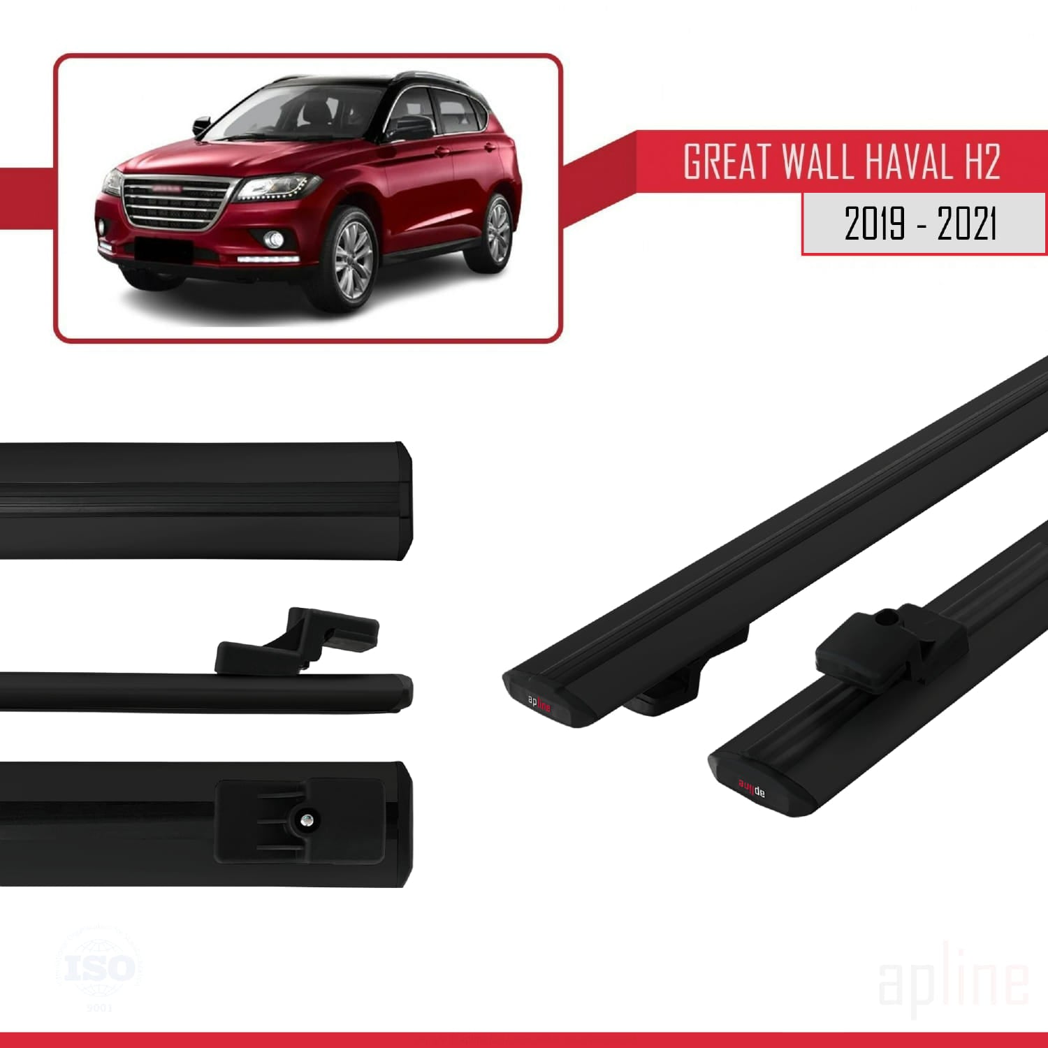 Compatible avec Great Wall Haval H2 2019-2021 BASIC Model Barres de Toit Railing Porte-Bagages de Voiture Noir Aluminium 2 Barres