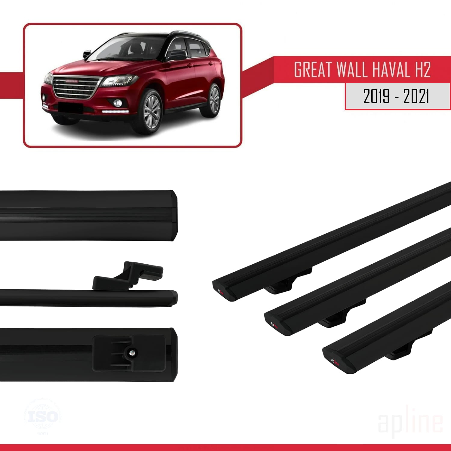 Compatible avec Great Wall Haval H2 2019-2021 BASIC Model Barres de Toit Railing Porte-Bagages de Voiture Noir Aluminium 3 Barres