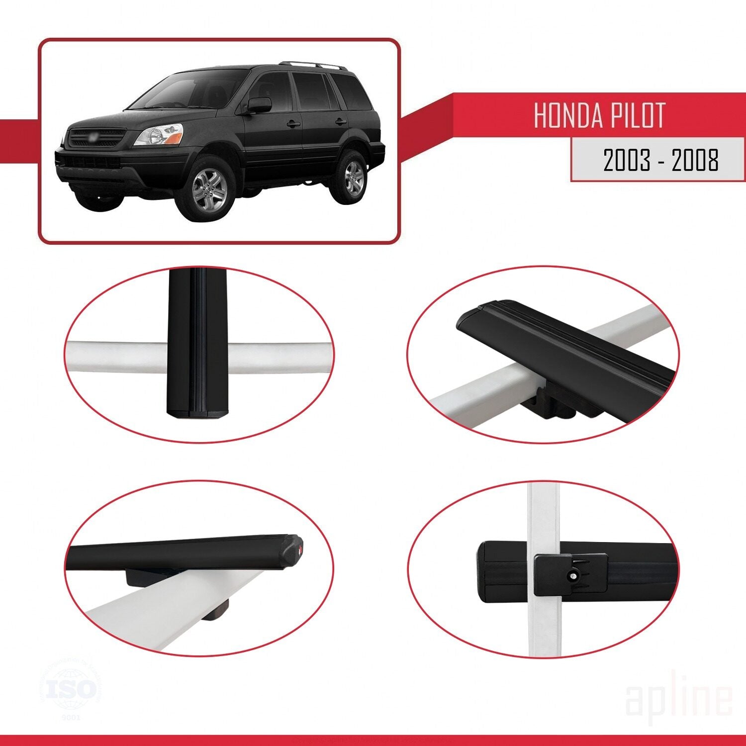 Compatible avec Honda Pilot 2003-2008 BASIC Model Barres de Toit Railing Porte-Bagages de Voiture Noir Aluminium 3 Barres