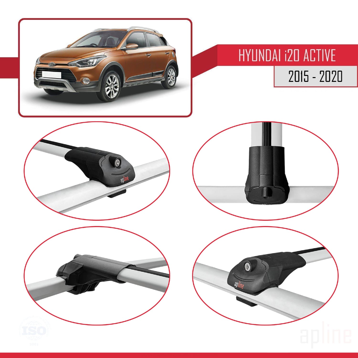 Compatible avec Hyundai i20 II Active 2015-2019 ACE-1 Barres de Toit Railing Porte-Bagages de Voiture Gris Aluminium 2 Barres