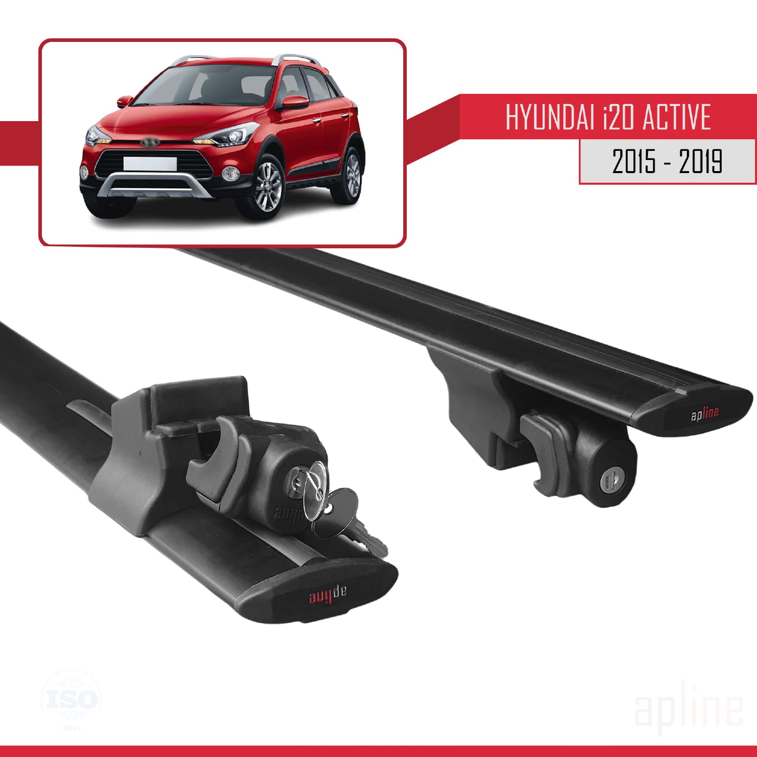 Compatible avec Hyundai i20 II Active 2015-2019 HOOK Model Barres de Toit Railing Porte-Bagages de Voiture Noir Aluminium 2 Barres
