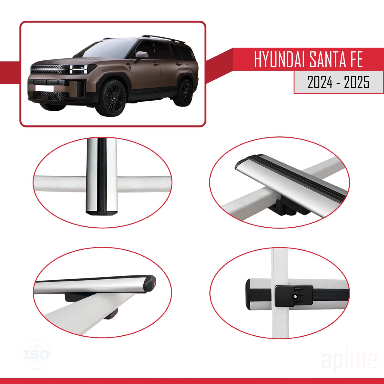 Compatible avec Hyundai Santa Fe 2024-2025 BASIC Model Barres de Toit Railing Porte-Bagages de Voiture Gris Aluminium 2 Barres