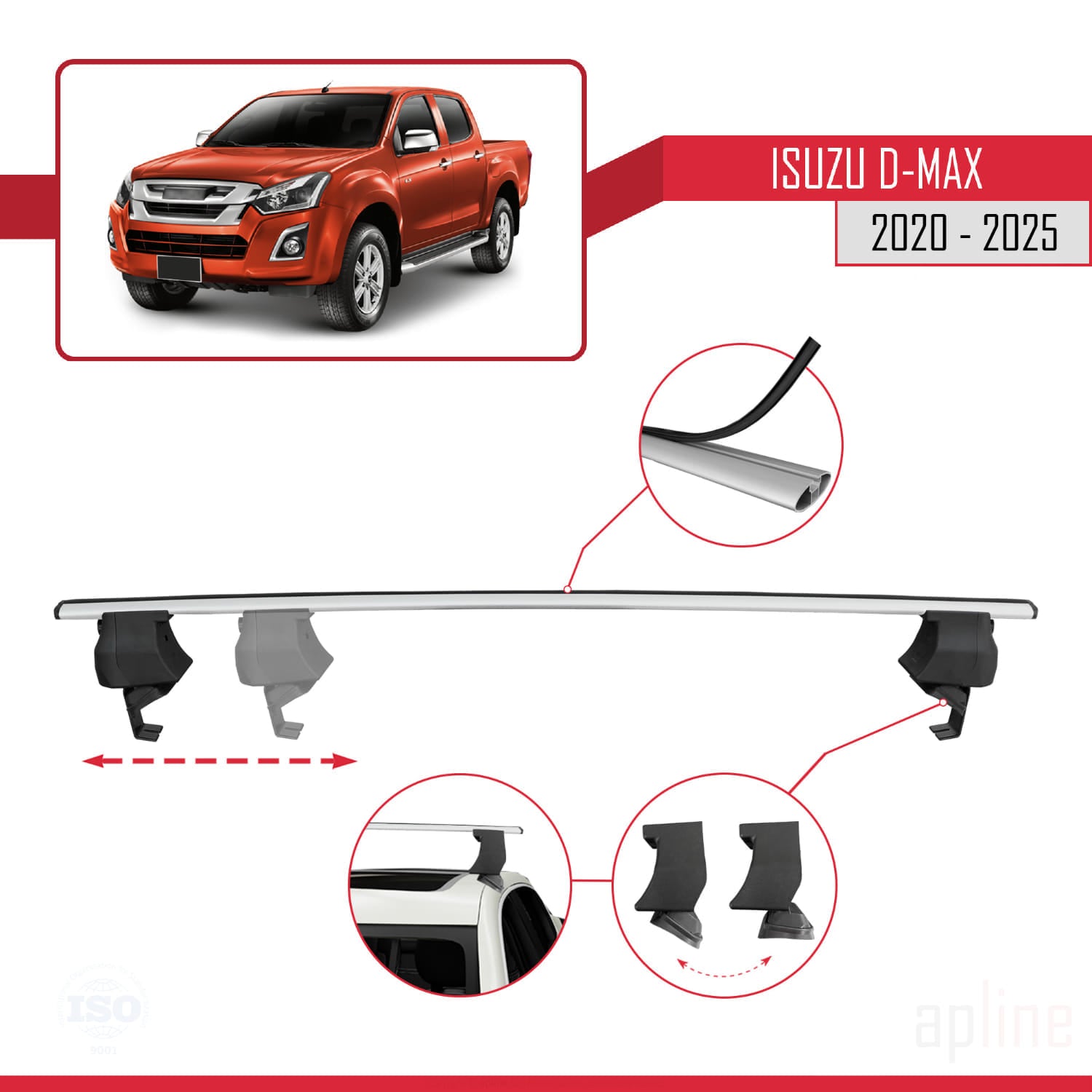 Compatible avec Isuzu D-Max 3 (RG01) 2020-2025 ACE-4 Barres de Toit Railing Porte-Bagages de Voiture Gris Aluminium 2 Barres