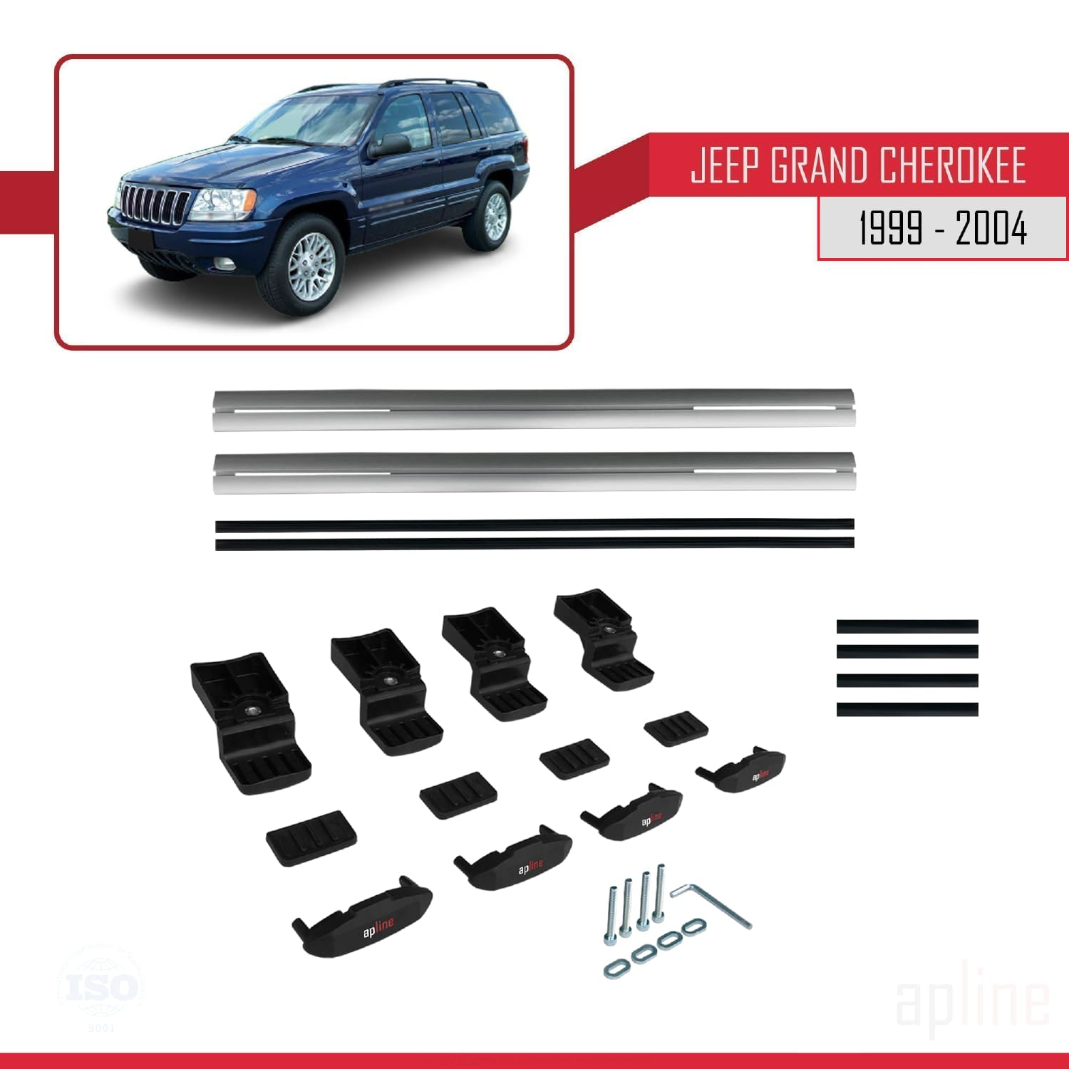 Compatible avec Jeep Grand Cherokee 2 (WJ) 1999-2004 BASIC Model Barres de Toit Railing Porte-Bagages de Voiture Gris Aluminium 2 Barres