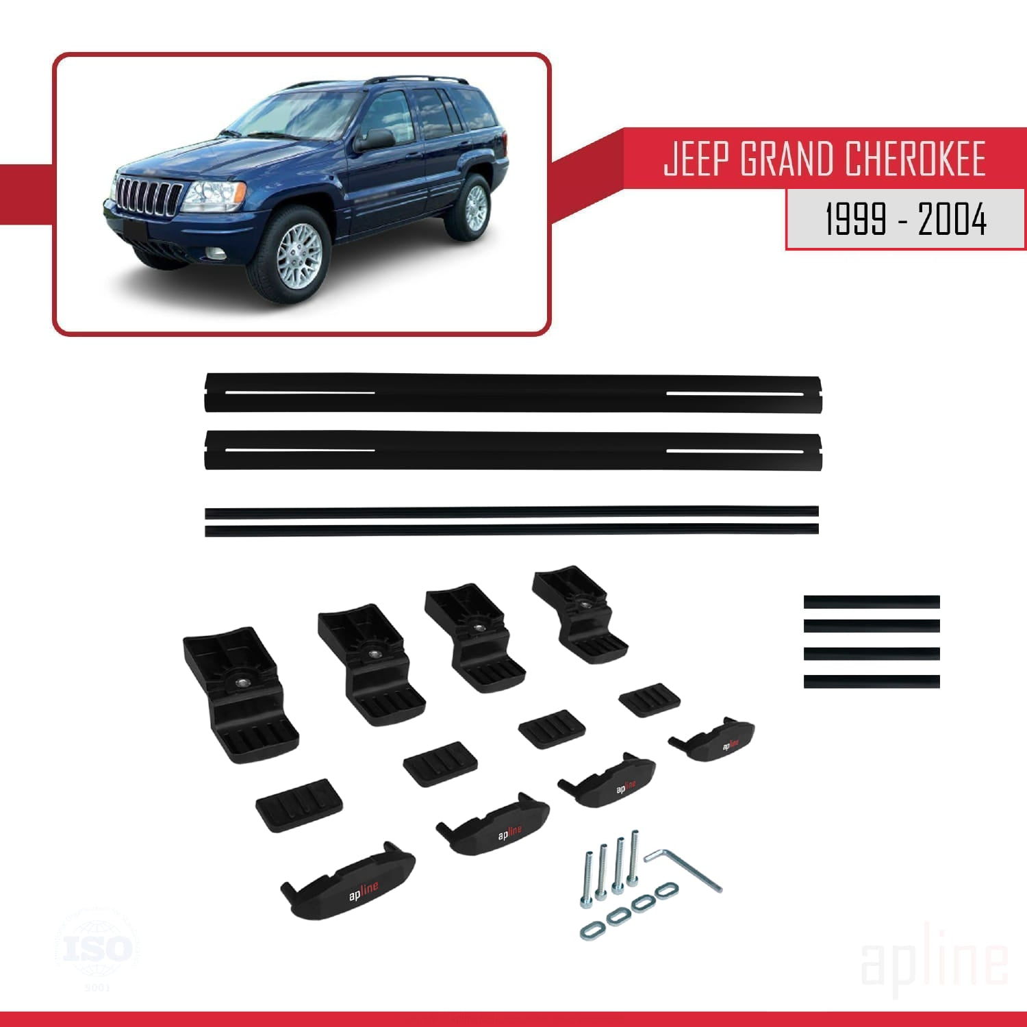 Compatible avec Jeep Grand Cherokee 2 (WJ) 1999-2004 BASIC Model Barres de Toit Railing Porte-Bagages de Voiture Noir Aluminium 2 Barres