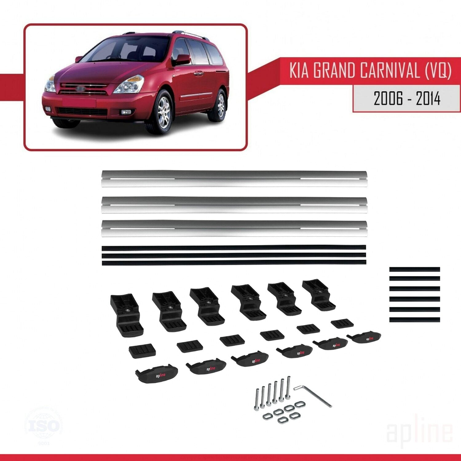 Compatible avec Kia Carnival 2 (VQ) 2006-2014 BASIC Model Barres de Toit Railing Porte-Bagages de Voiture Gris Aluminium 3 Barres