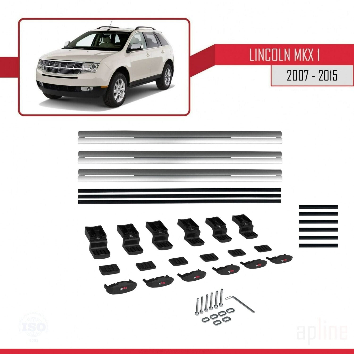 Compatible avec Lincoln MKX (U388) 2007-2015 BASIC Model Barres de Toit Railing Porte-Bagages de Voiture Gris Aluminium 3 Barres