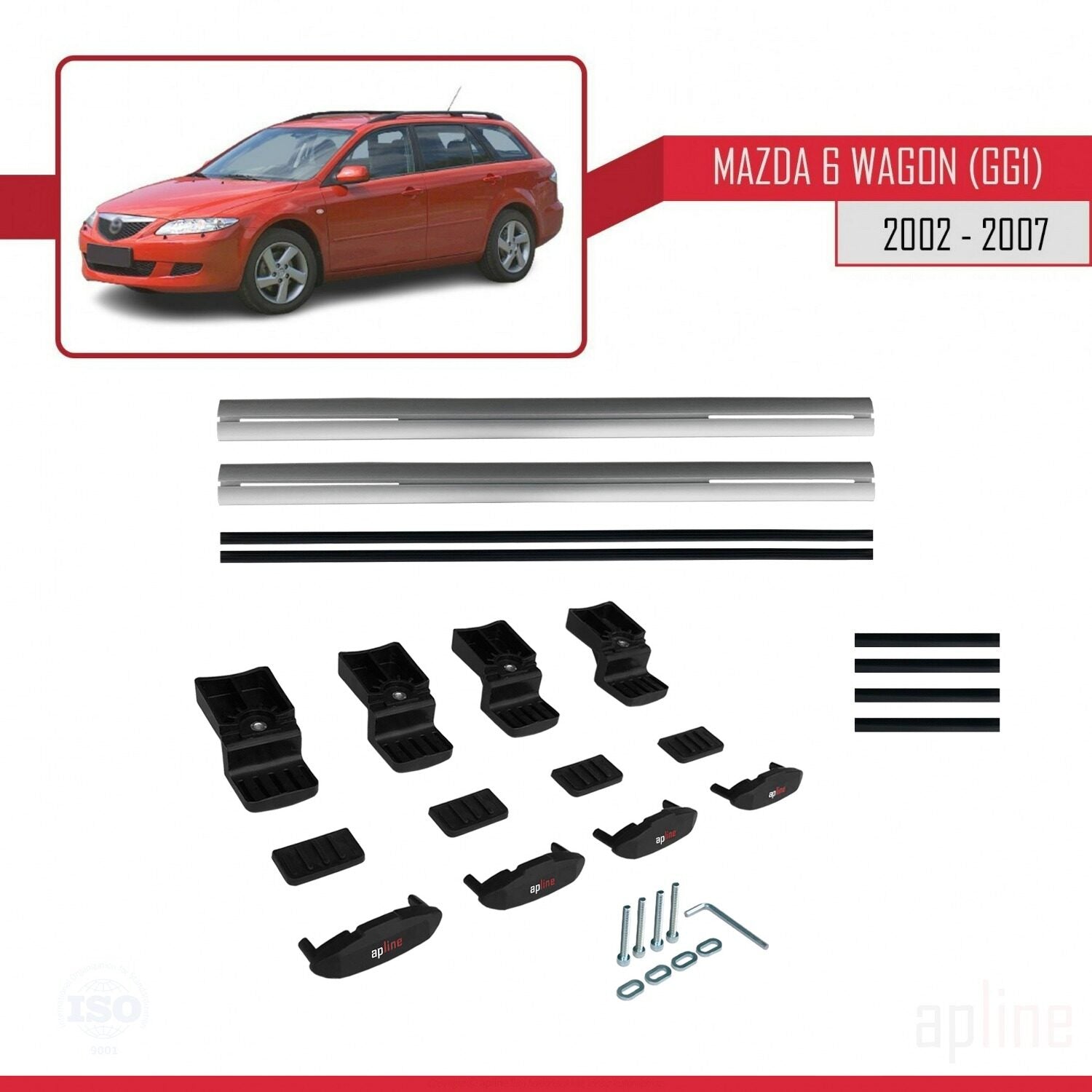 Compatible avec Mazda 6 I (GG1) 2002-2007 BASIC Model Barres de Toit Railing Porte-Bagages de Voiture Gris Aluminium 2 Barres