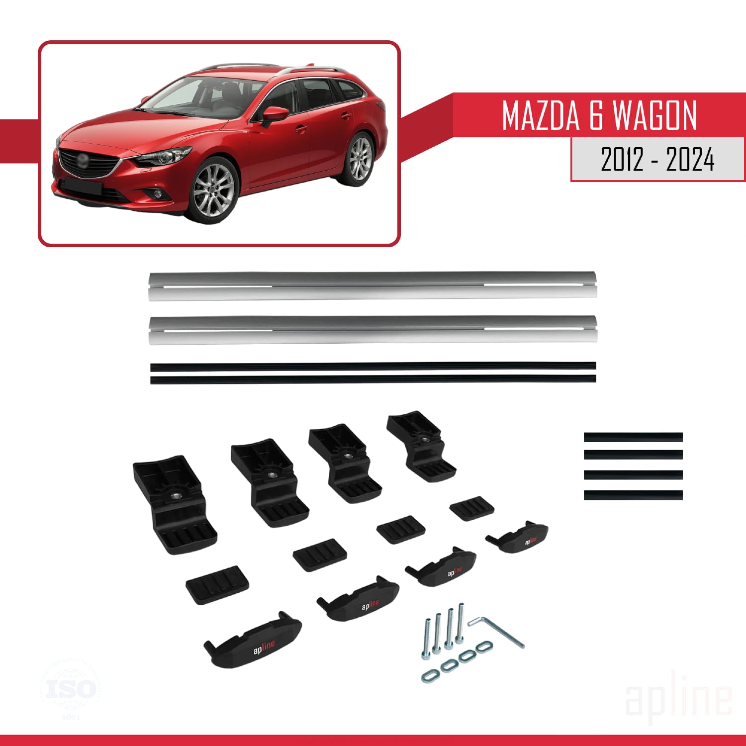 Compatible avec Mazda 6 Wagon 2012-2024 BASIC Model Barres de Toit Railing Porte-Bagages de Voiture Gris Aluminium 2 Barres