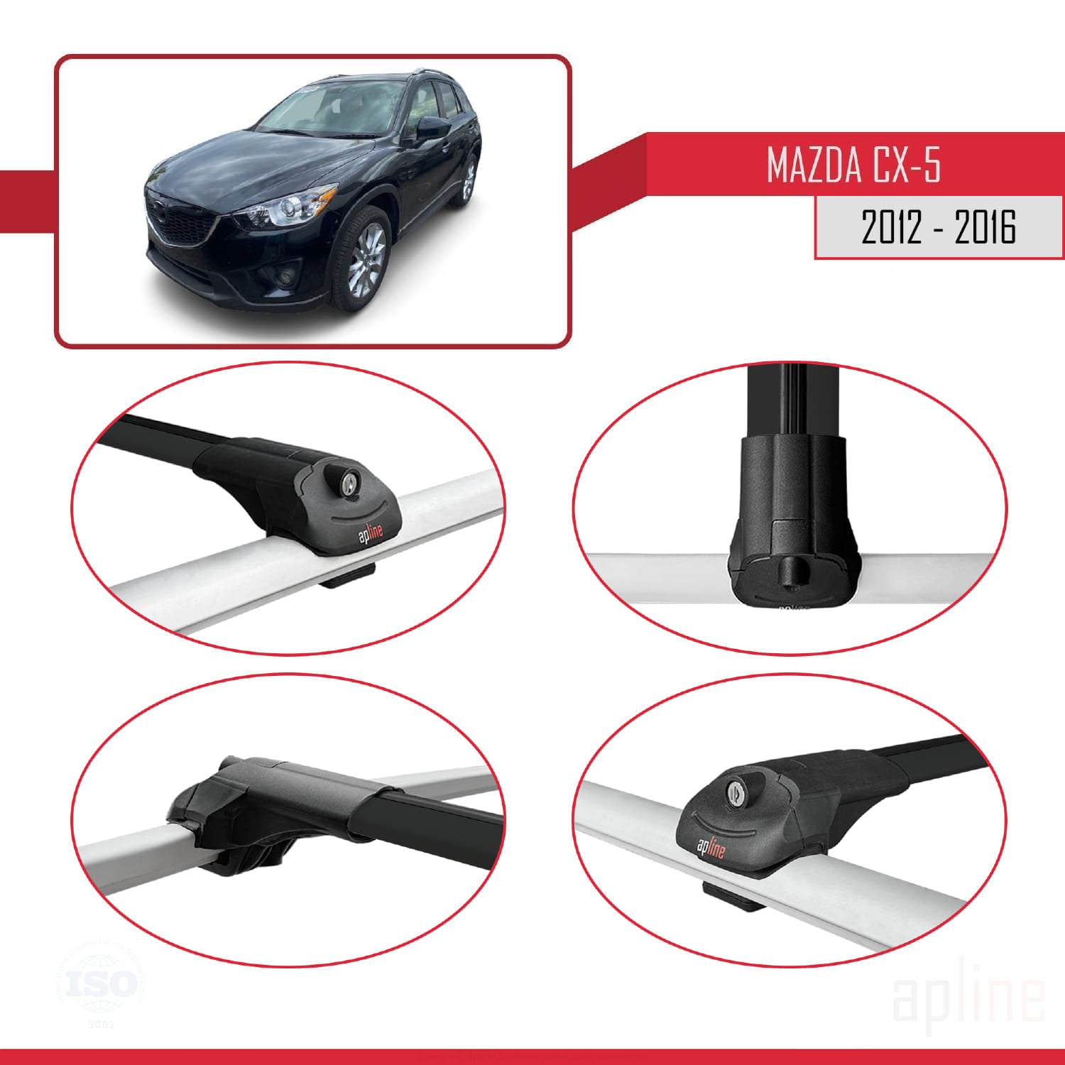 Compatible avec Mazda CX-5 I (KE) 2012-2016 ACE-1 Barres de Toit Railing Porte-Bagages de Voiture Noir Aluminium 3 Barres