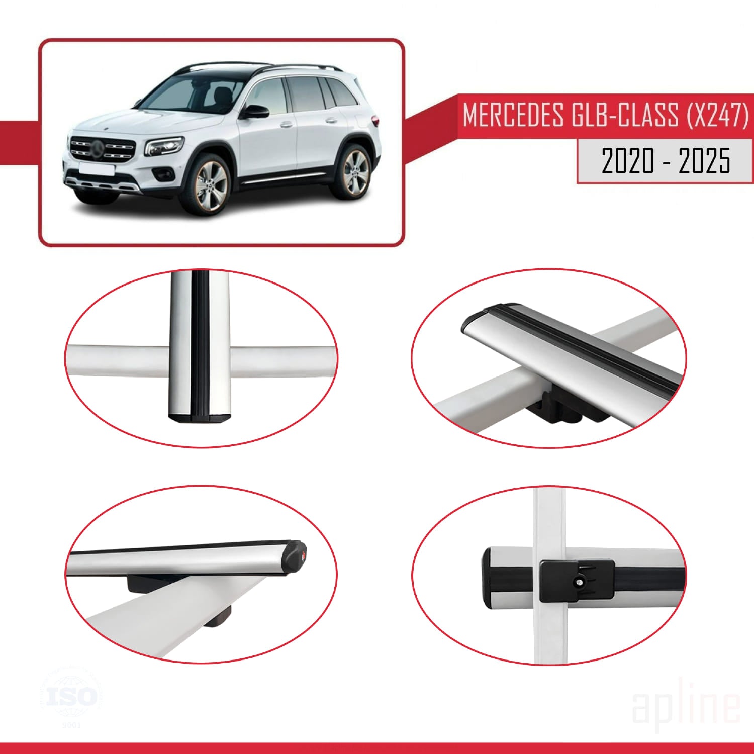 Compatible avec Mercedes Classe GLB (X247) 2020-2025 BASIC Model Barres de Toit Railing Porte-Bagages de Voiture Gris Aluminium 2 Barres