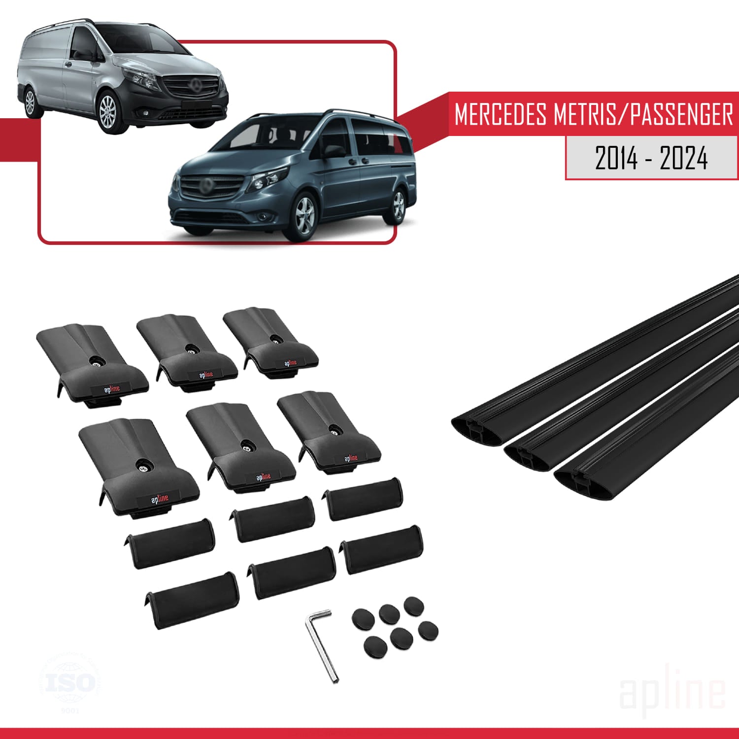 Compatible avec Mercedes Metris (W447) 2014-2025 FLY Model Barres de Toit Railing Porte-Bagages de Voiture Noir Aluminium 3 Barres