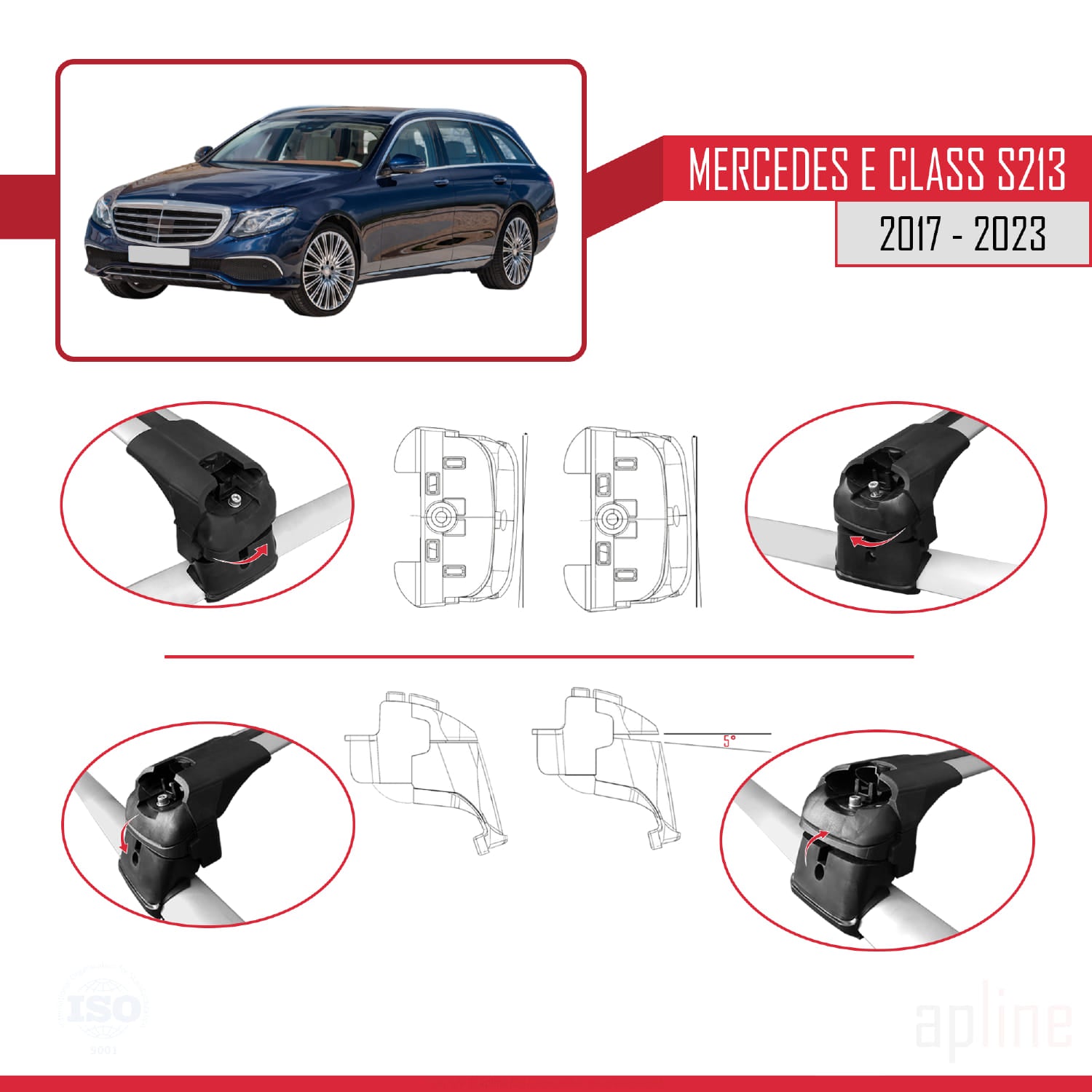 Compatible avec Mini Clubman Mercedes E Class S213 2017-2023 ACE-2 Barres de Toit Railing Porte-Bagages de Voiture Gris Aluminium 2 Barres
