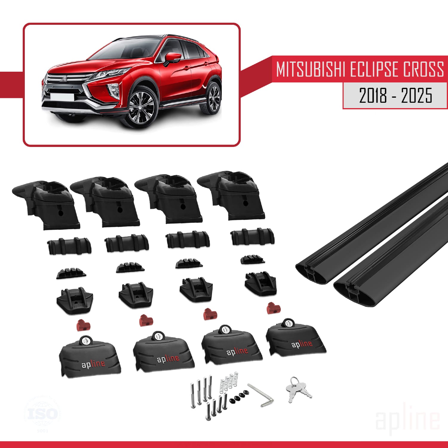 Compatible avec Mitsubishi Eclipse Cross (GK) 2018-2025 ACE-2 Barres de Toit Railing Porte-Bagages de Voiture Noir Aluminium 2 Barres