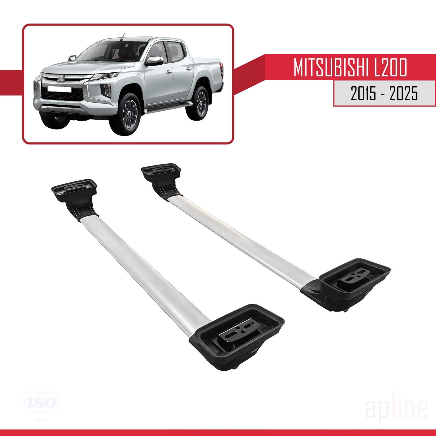 Compatible avec Mitsubishi L200 (MK5) 2015-2025 ACE-3 Barres de Toit Railing Porte-Bagages de Voiture Gris Aluminium 2 Barres