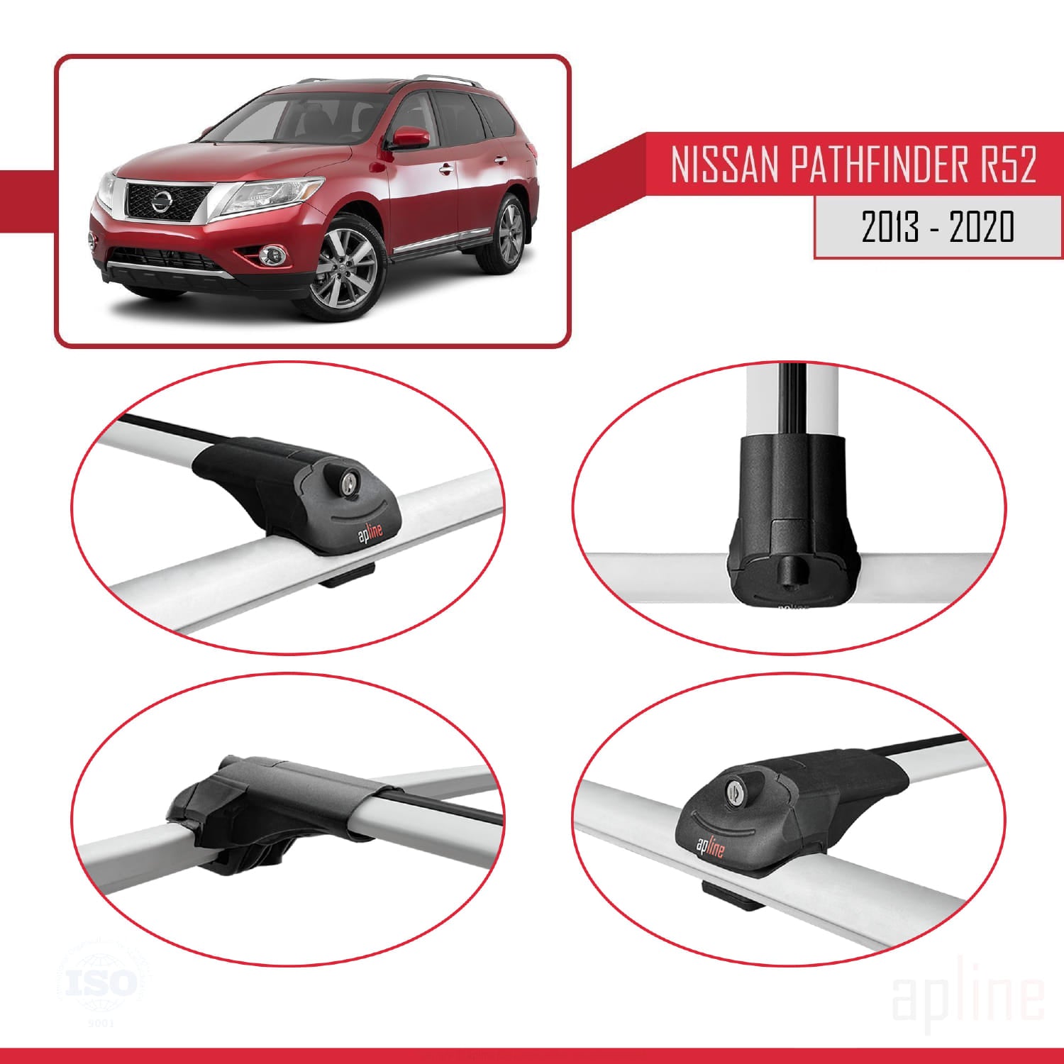 Compatible avec Nissan Pathfinder 4 (R52) 2013-2020 ACE-1 Barres de Toit Railing Porte-Bagages de Voiture Gris Aluminium 2 Barres