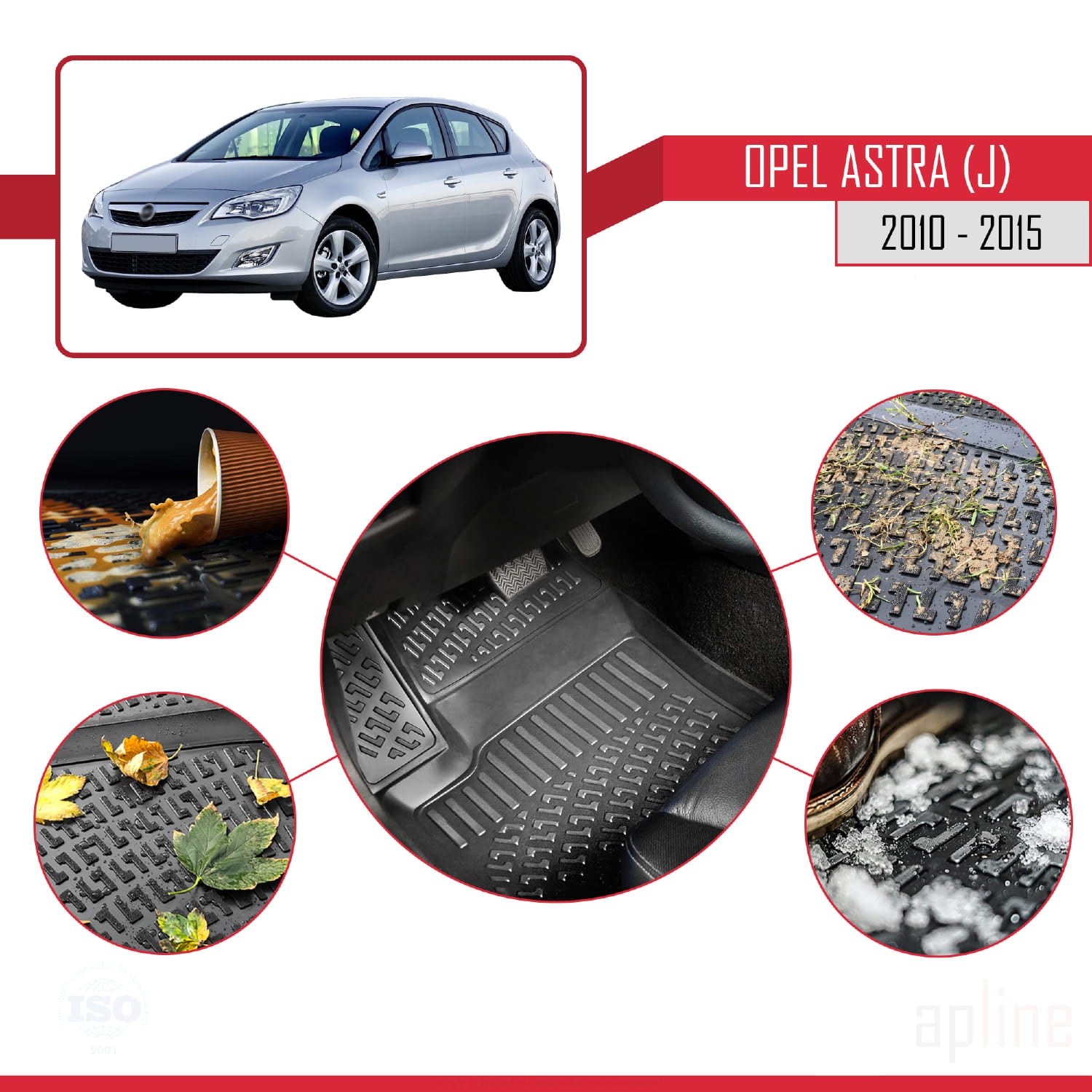 Compatible avec Opel Astra J (P09) 2010-2015 4D Tapis de Voiture Noir